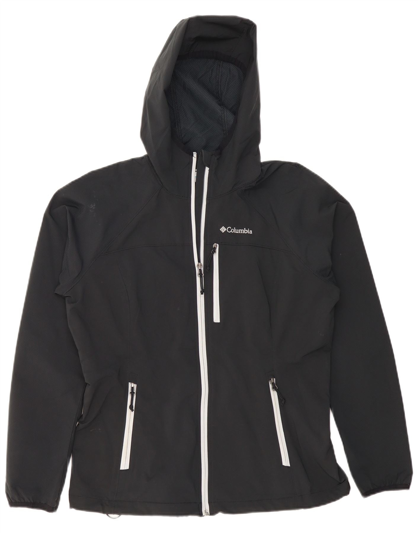 COLUMBIA Womens Hooded Tracksuit Top Jacket UK 16 Large Black Polyester