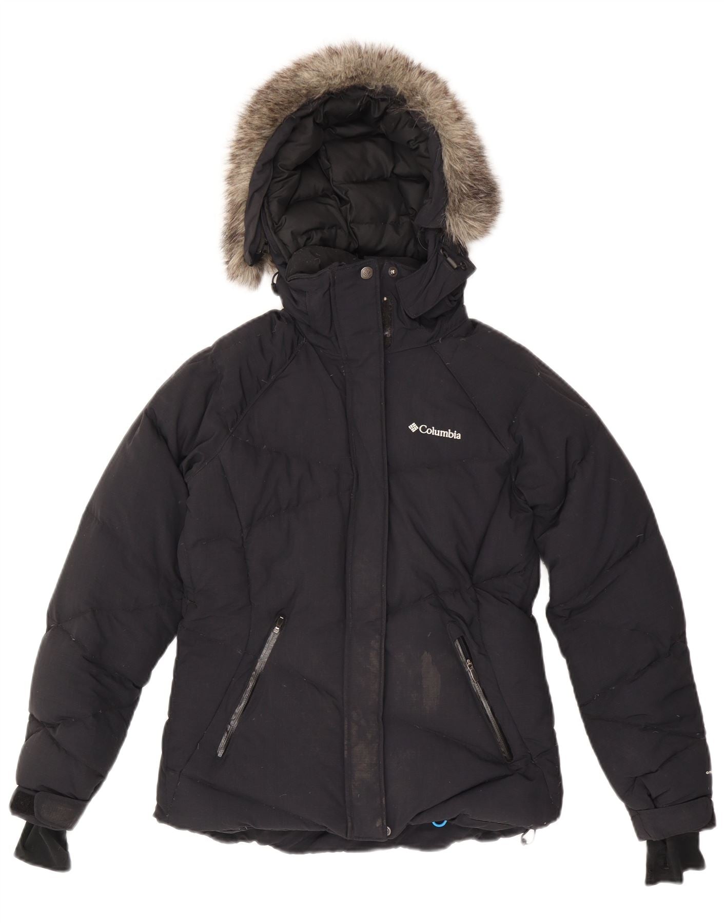 COLUMBIA Womens Button Neck Fleece Jumper UK 10 Small Grey Colourblock