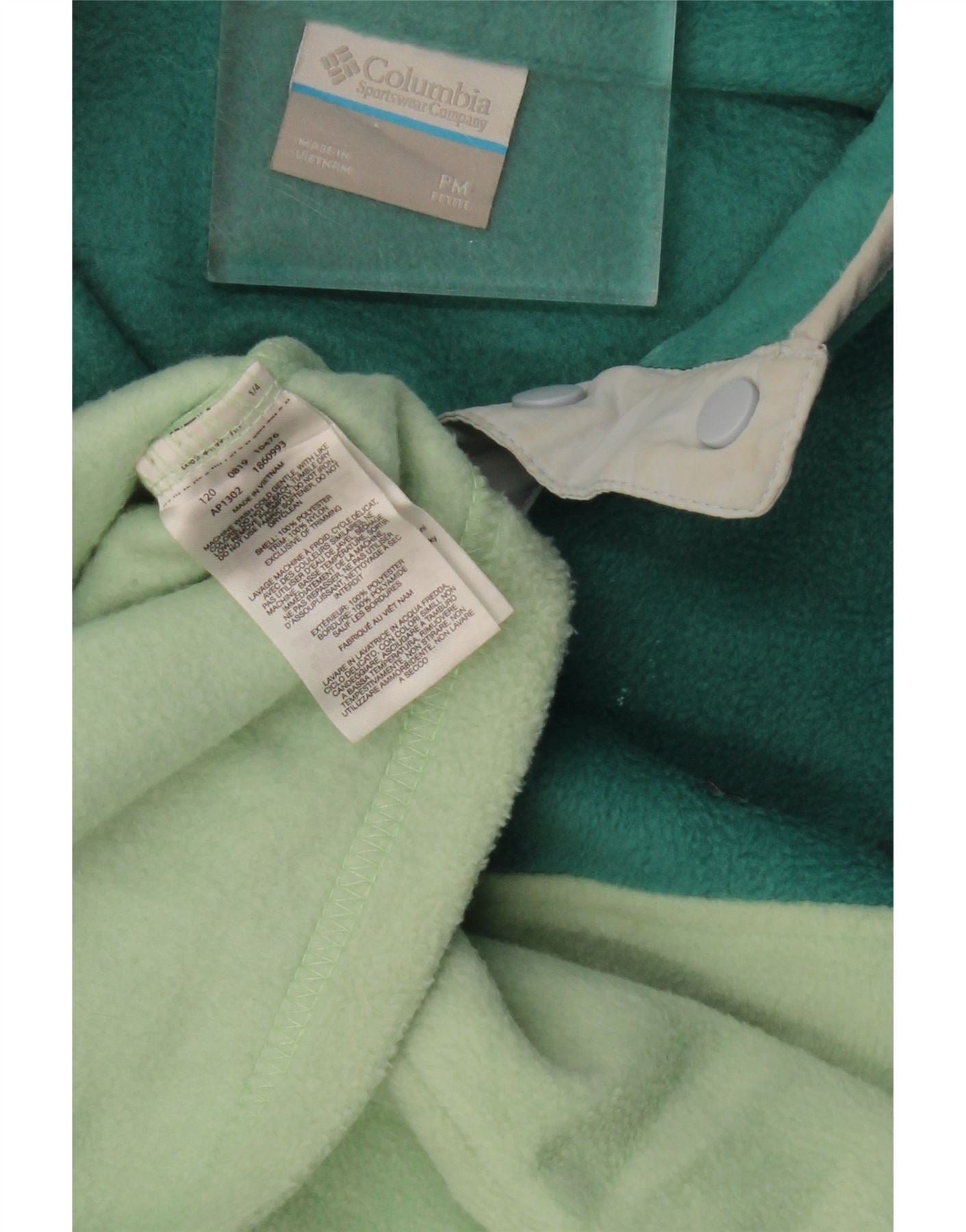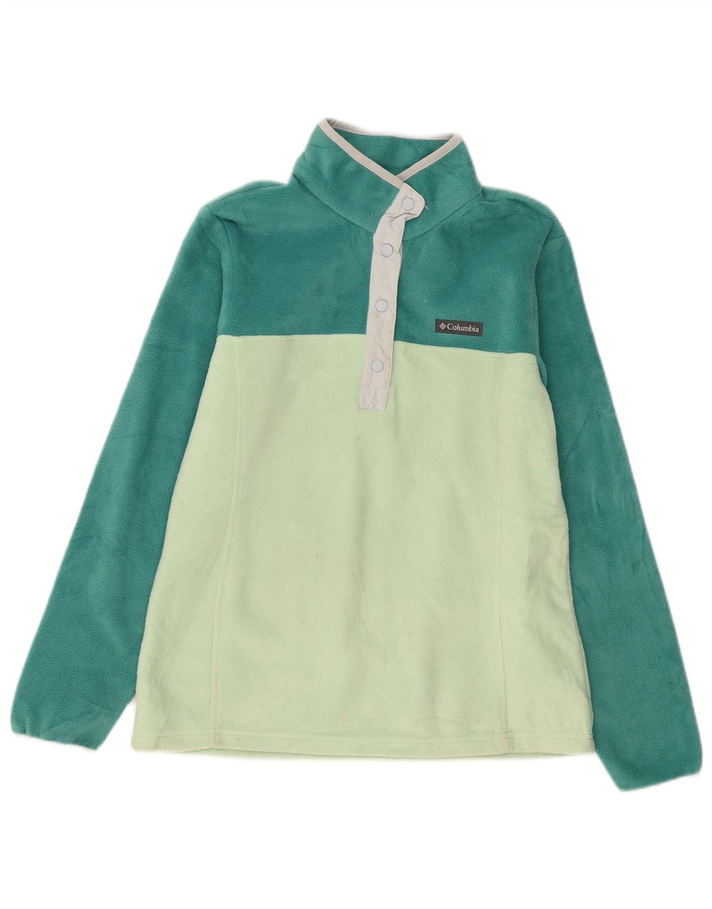 COLUMBIA Womens Petite Fleece Jumper UK 14 Medium Green Colourblock