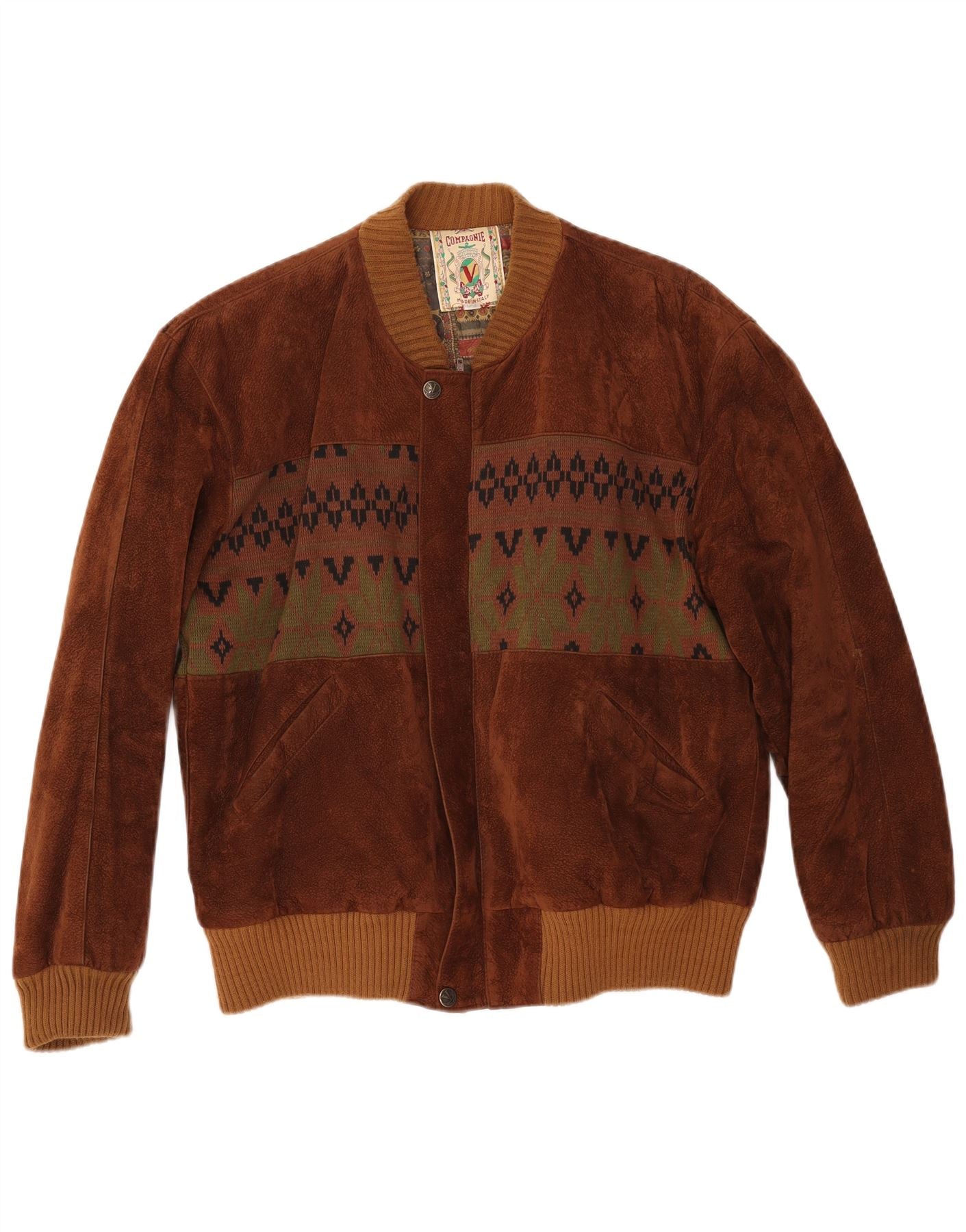 COMPAGNIE Męska zamszowa kurtka bomber o luźnym kroju UK 38 Średni brąz Fair Isle