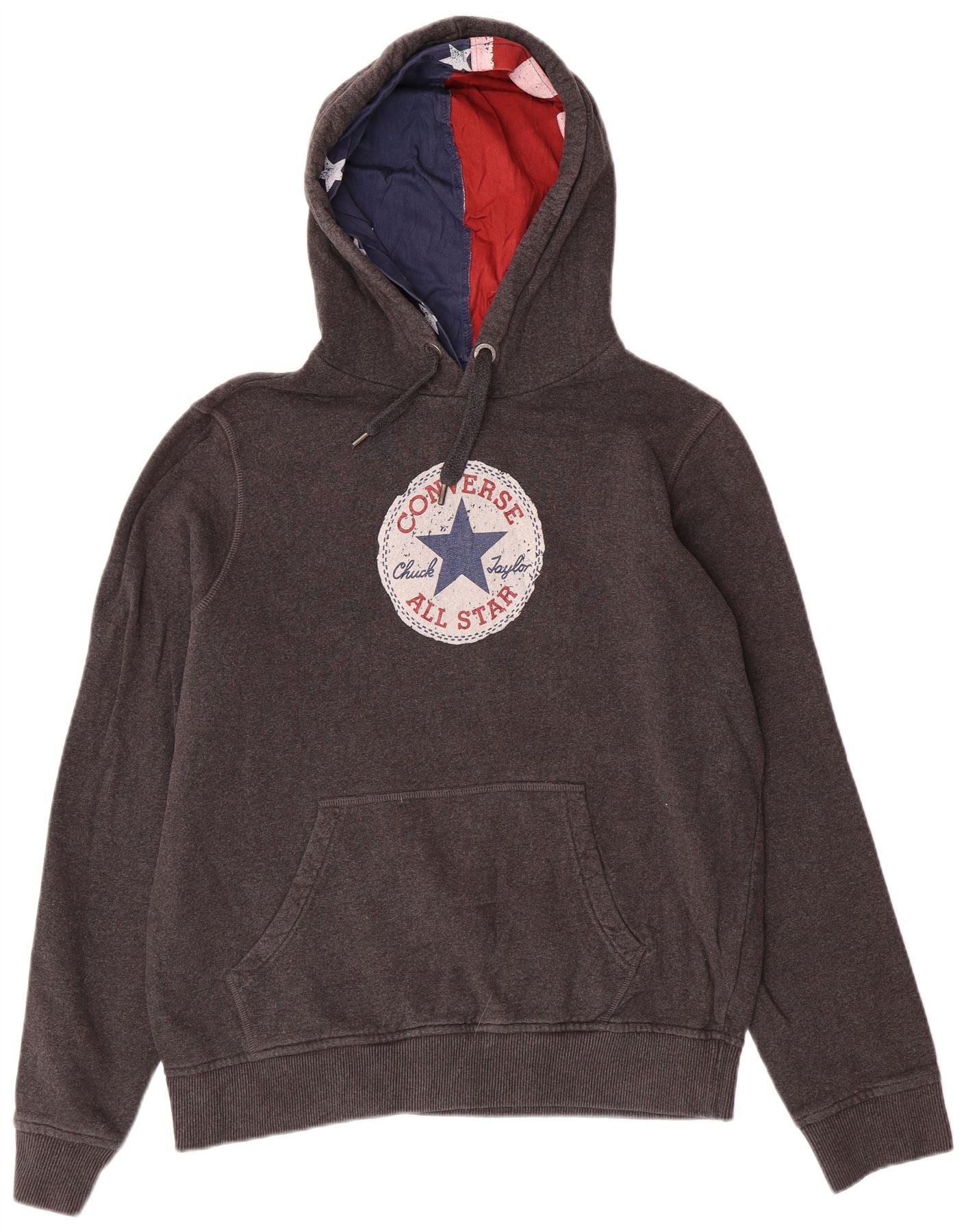 CONVERSE Męski sweter z kapturem i grafiką, średnioszary, bawełniany