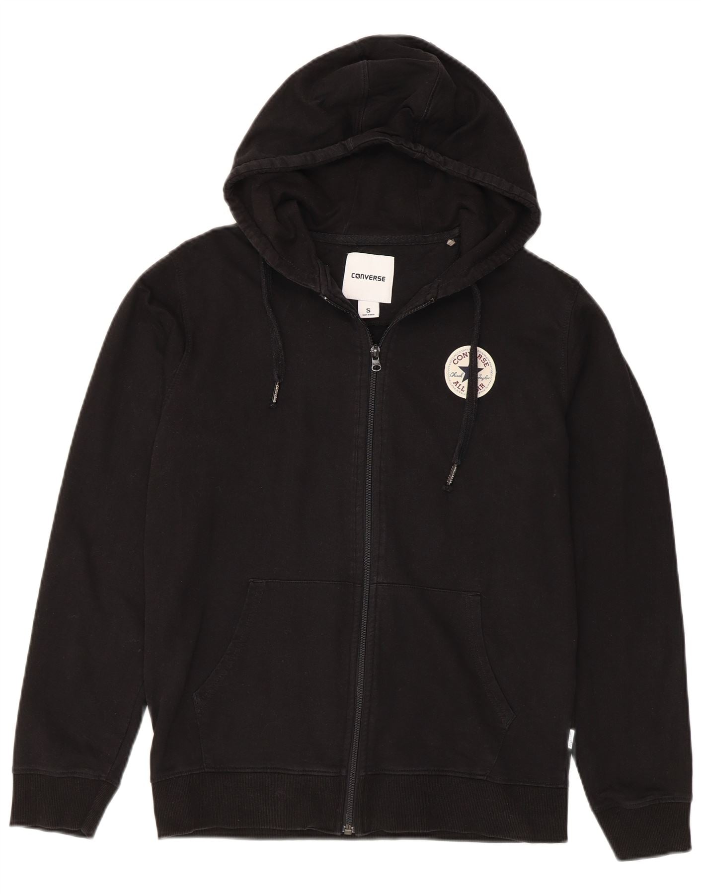 CONVERSE Męski sweter z kapturem i zamkiem błyskawicznym, mały, czarny, bawełniany
