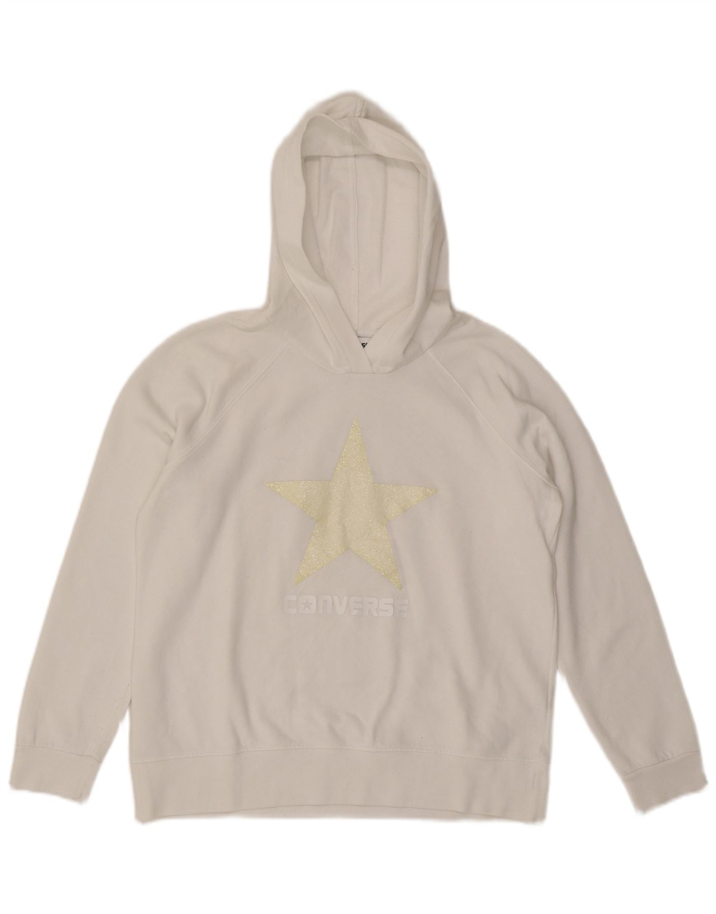 CONVERSE Damska bluza z kapturem z grafiką UK 14, średnia, biała bawełna