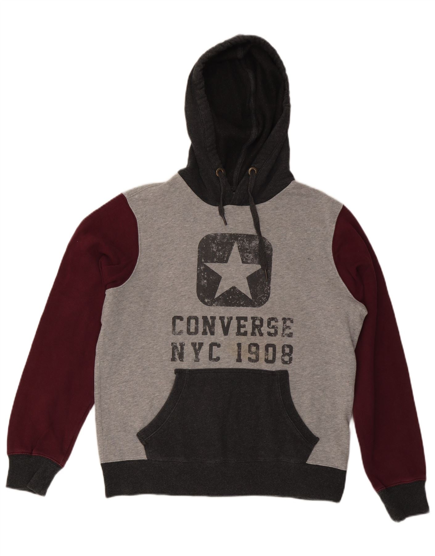 CONVERSE Damski sweter z kapturem z grafiką UK 16, duży, szary, bawełniany w bloki kolorów