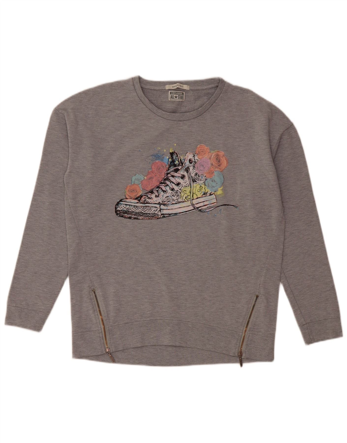 Damski sweter z grafiką CONVERSE UK 14, średnioszary, bawełniany