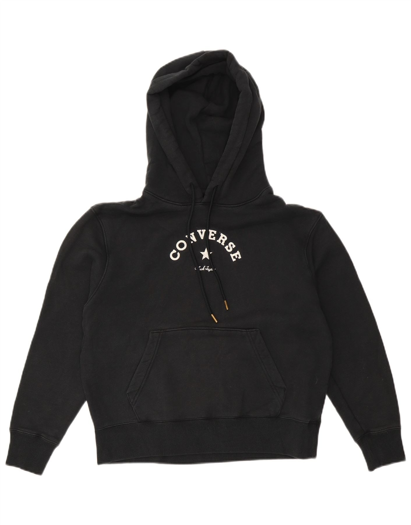 CONVERSE Damski sweter oversize z kapturem i grafiką UK 10, mały, czarny, bawełniany