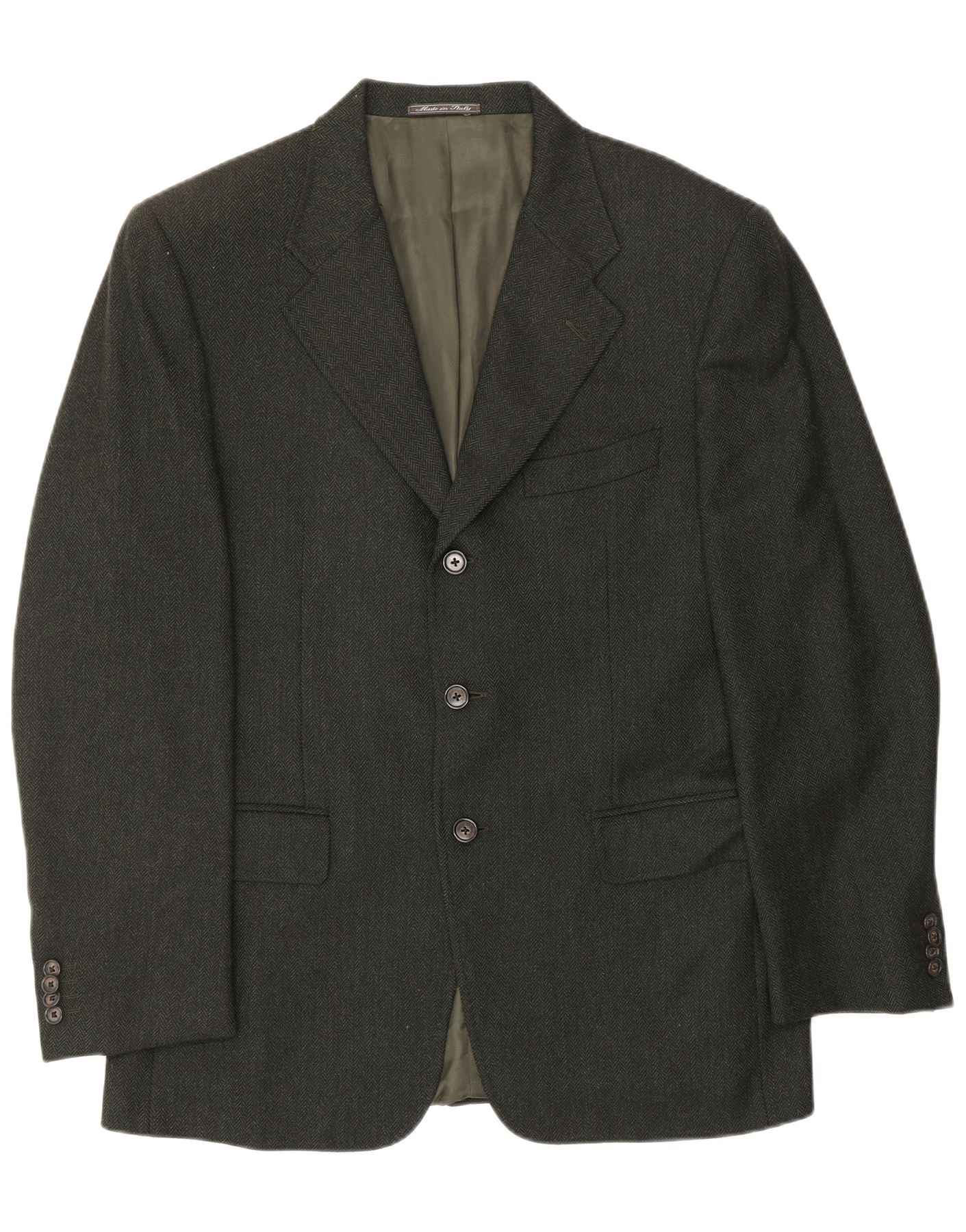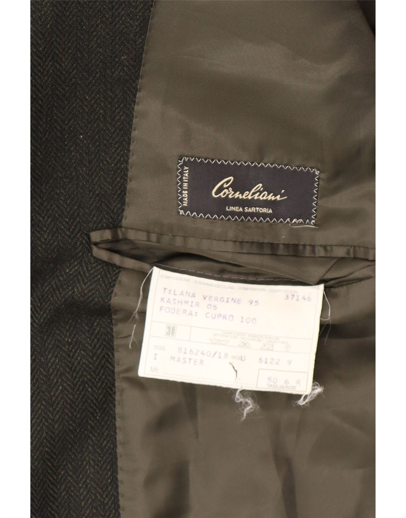 CORNELIANI Męska marynarka zapinana na 3 guziki IT 50, duża, zielona wełna w jodełkę