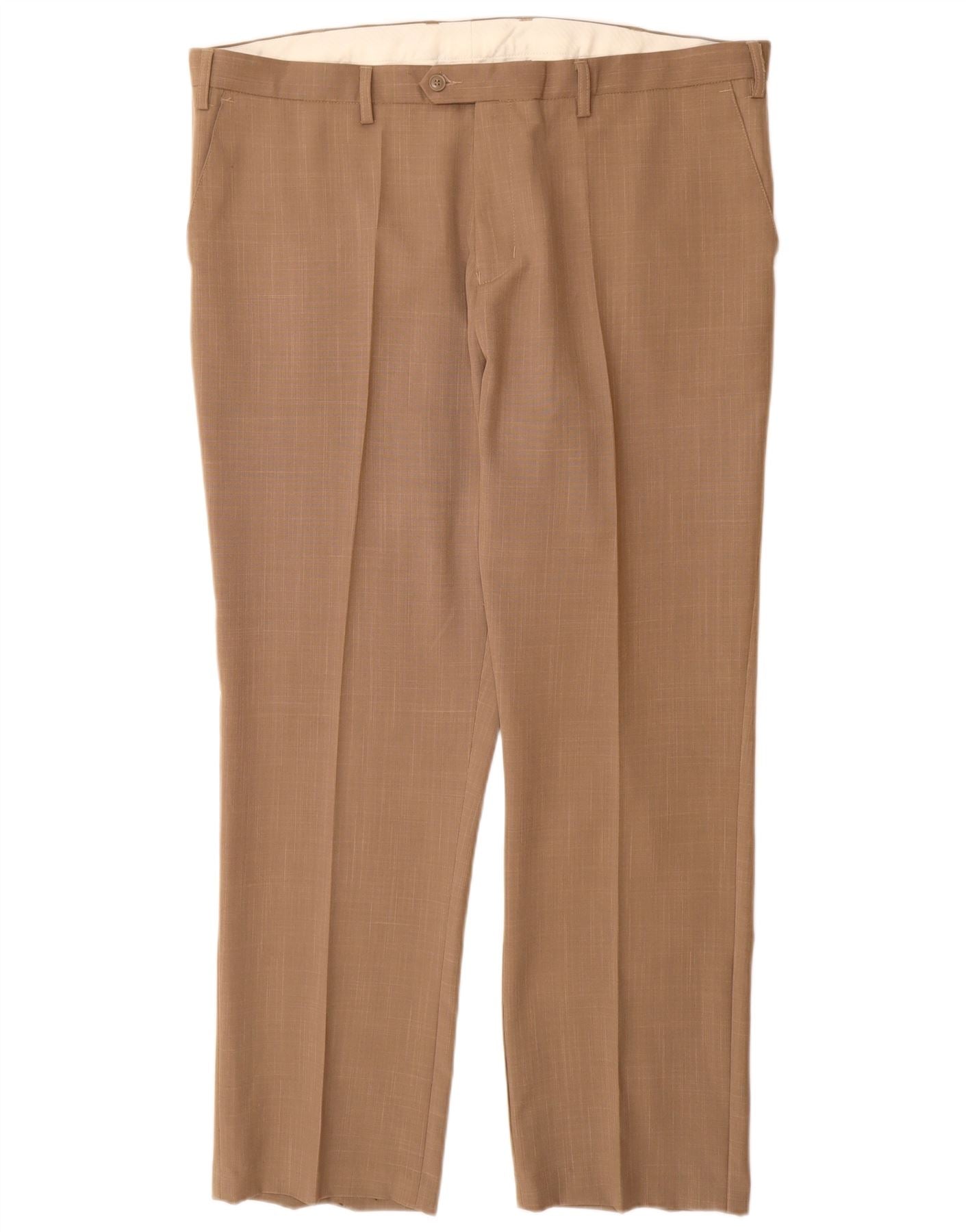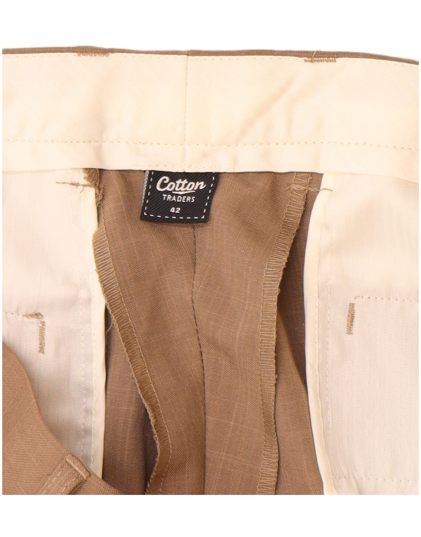 COTTON TRADERS Męskie proste spodnie garniturowe W42 L31 Beżowy poliester