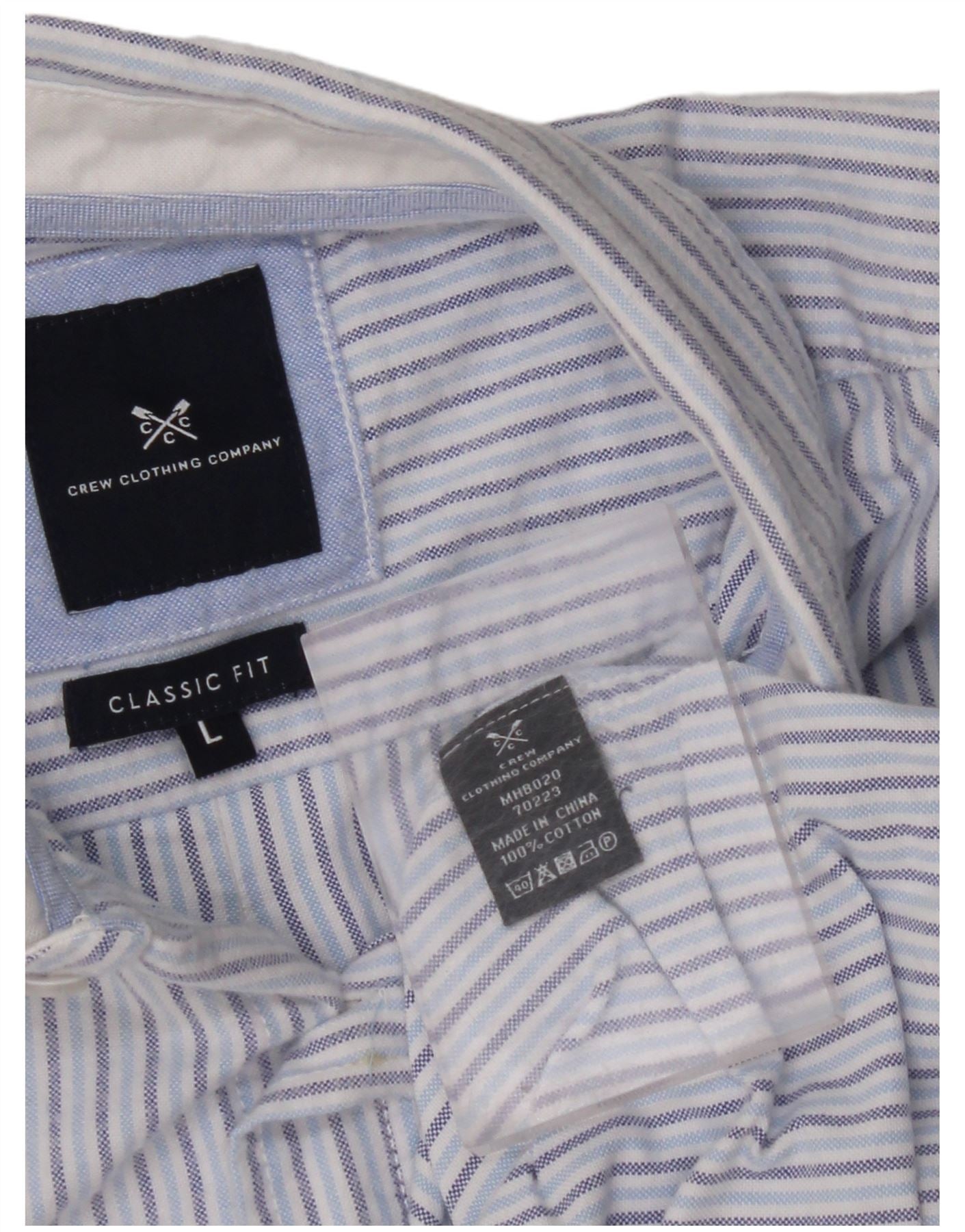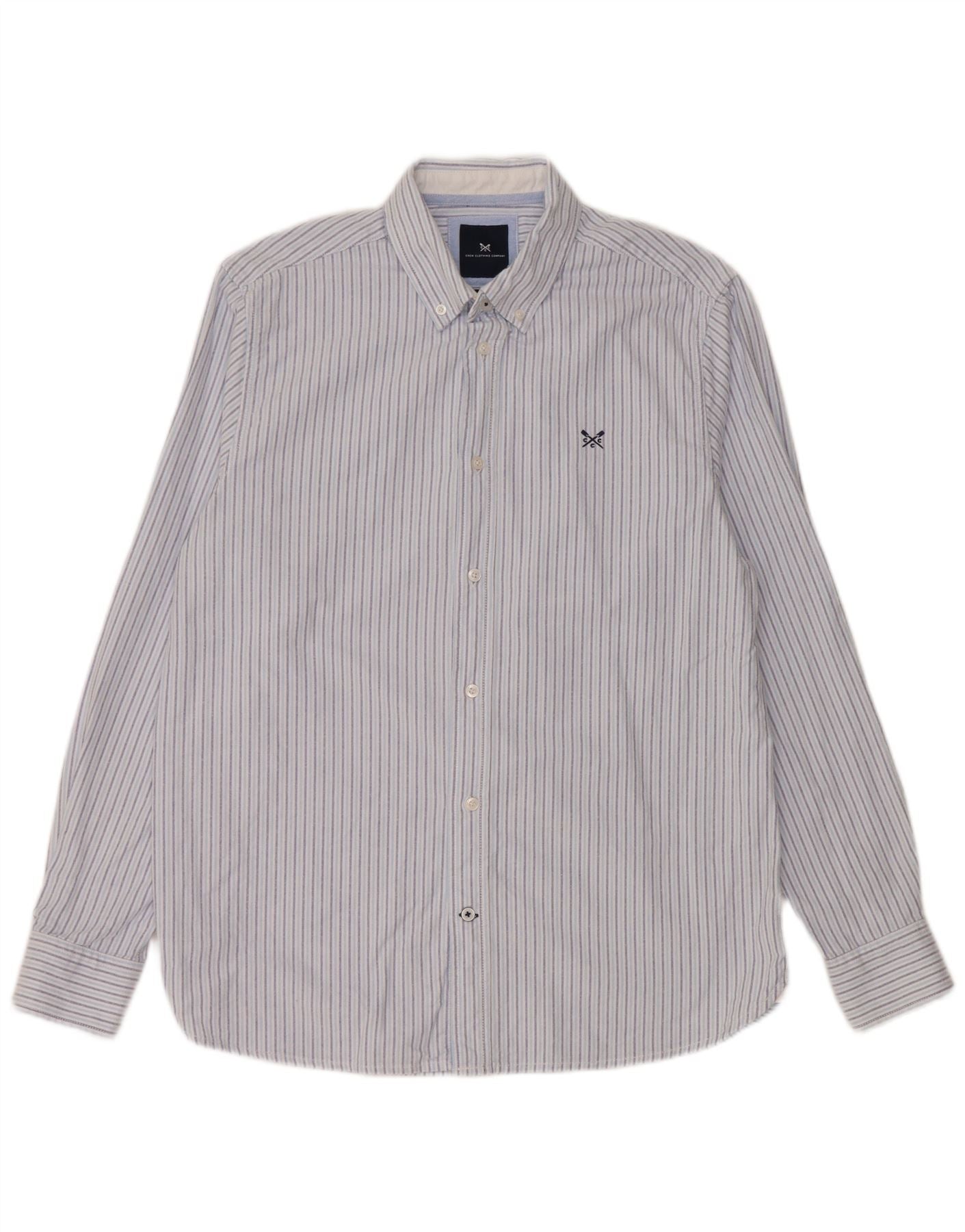 CREW CLOTHING Męska koszula o klasycznym kroju, duża, niebieska, bawełniana w prążki