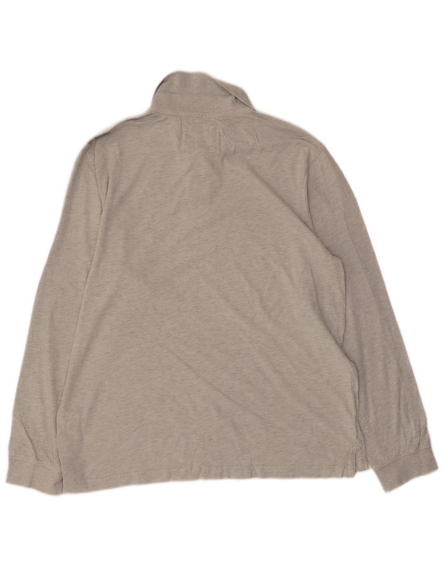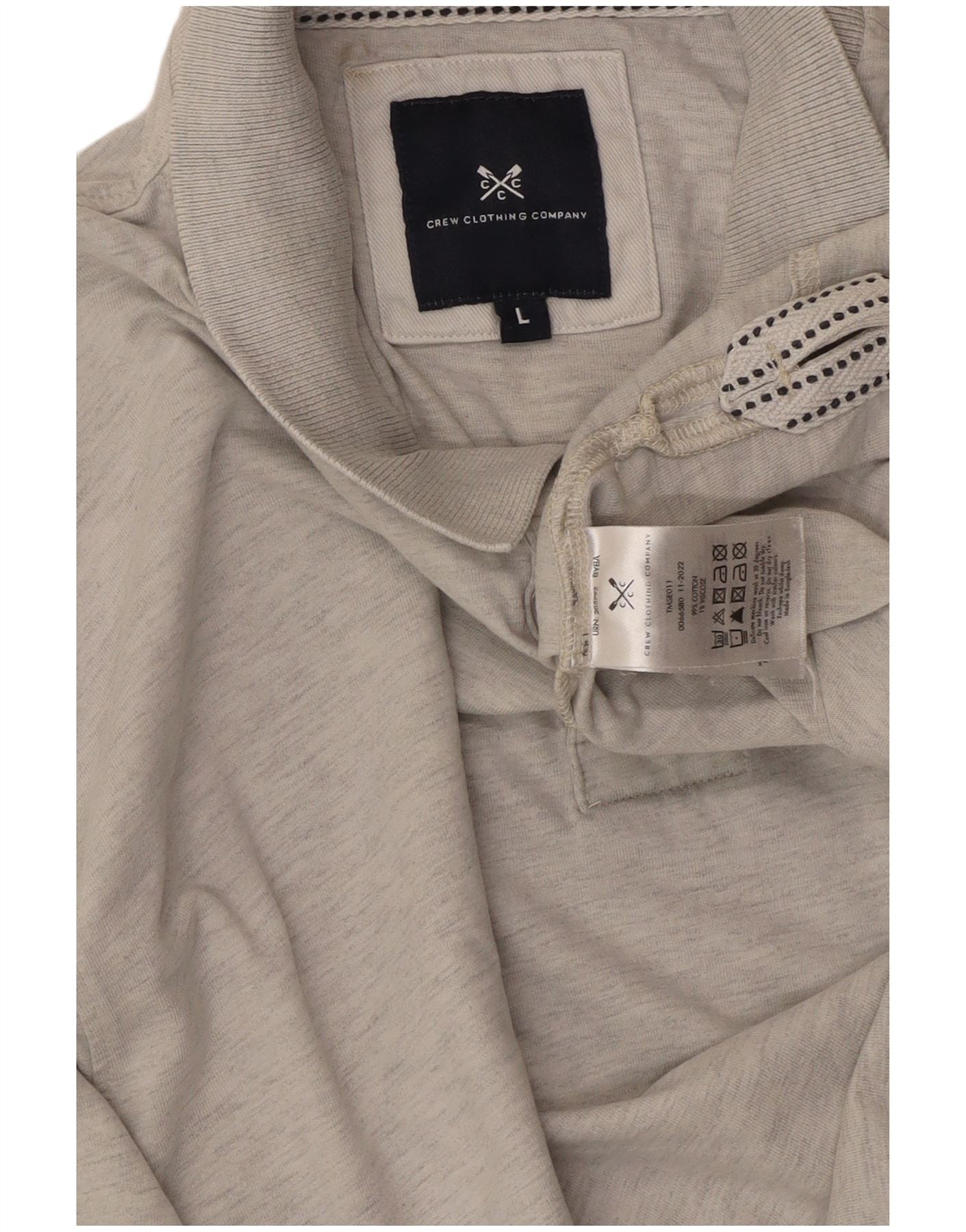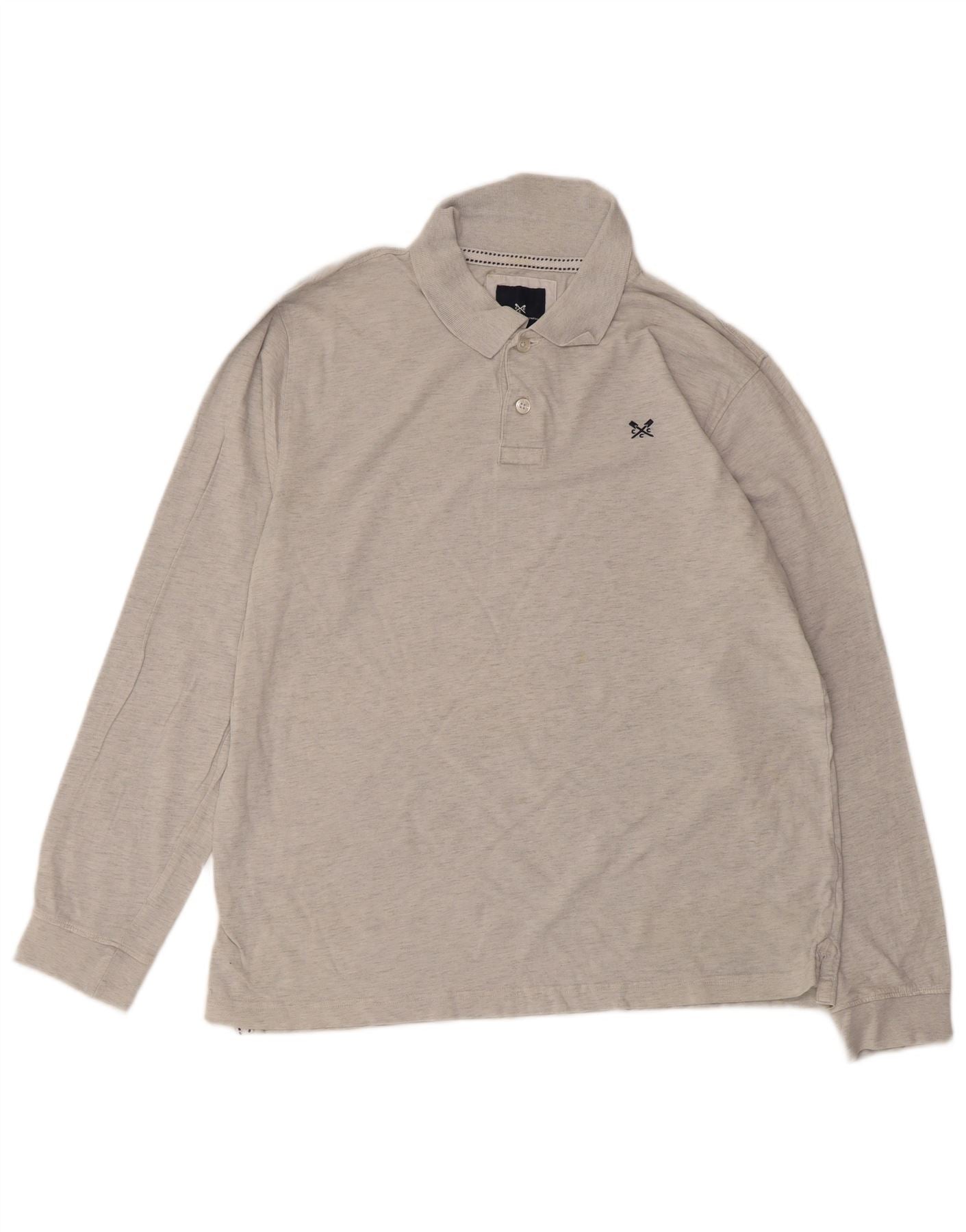 CREW CLOTHING Mens Long Sleeve Polo Shirt Large Grey Flecked Cotton