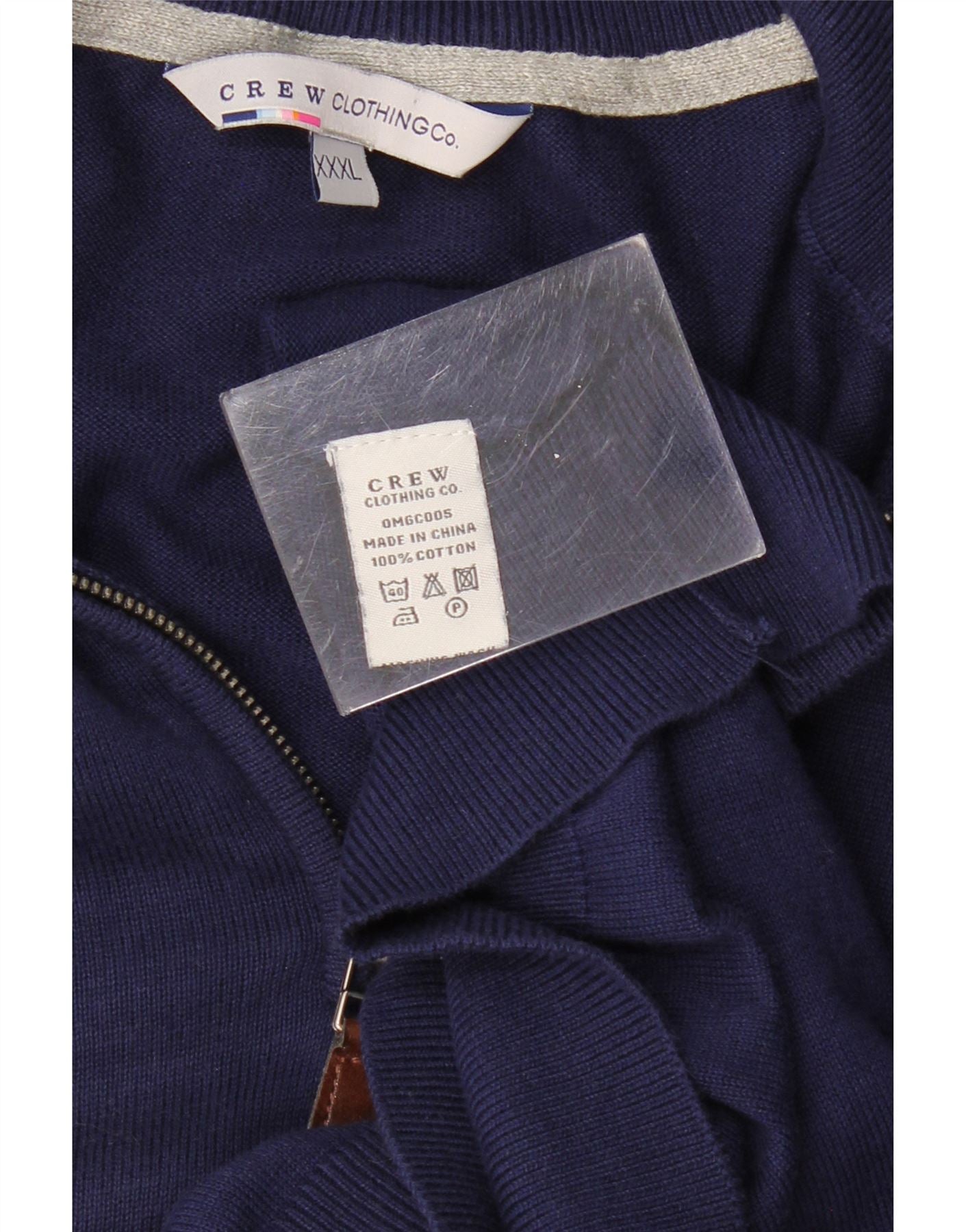 CREW CLOTHING Męski sweter zapinany na zamek, 3XL, granatowy, bawełniany