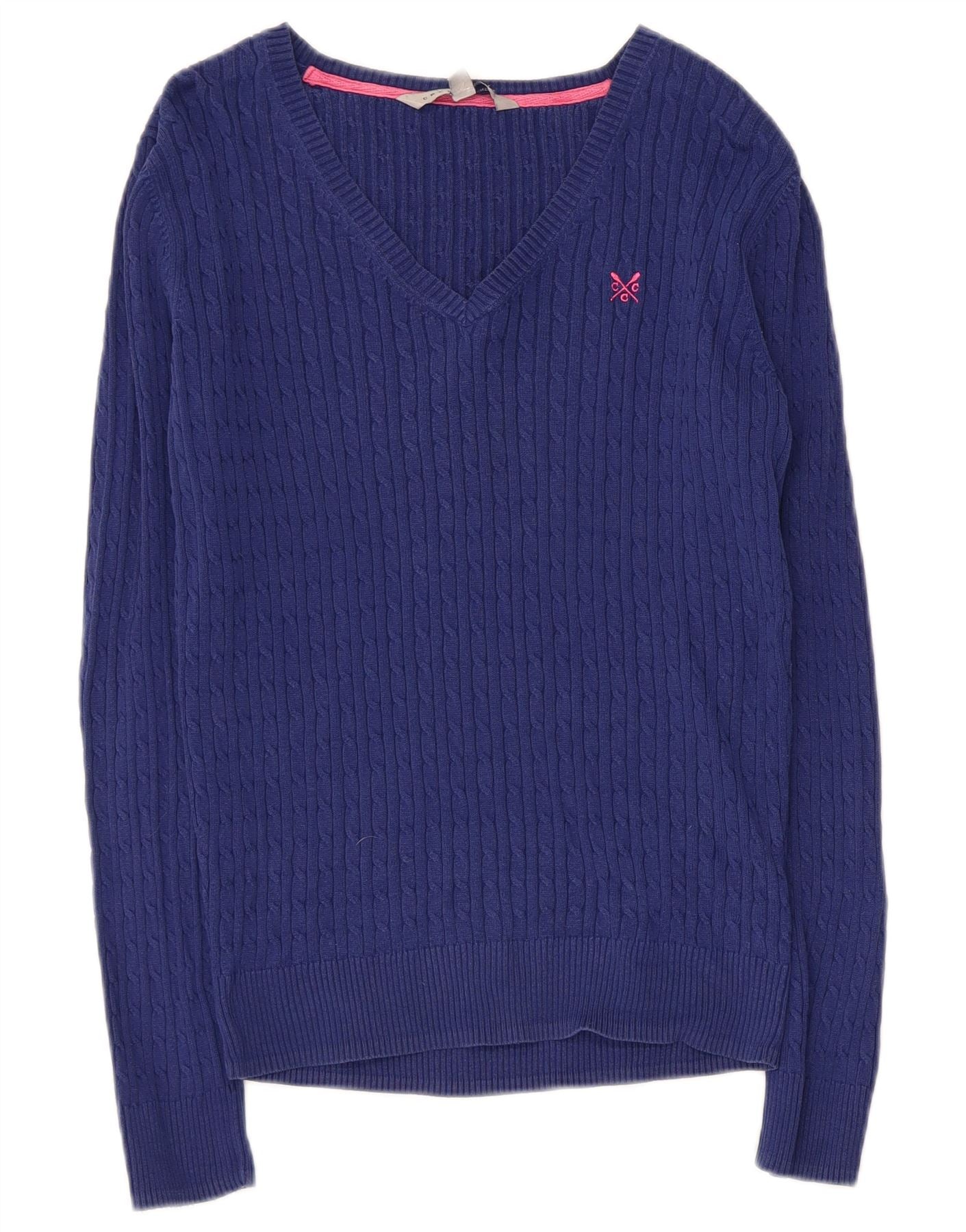 CREW CLOTHING Damski sweter z dekoltem w kształcie litery V, UK 12, średni niebieski, bawełniany