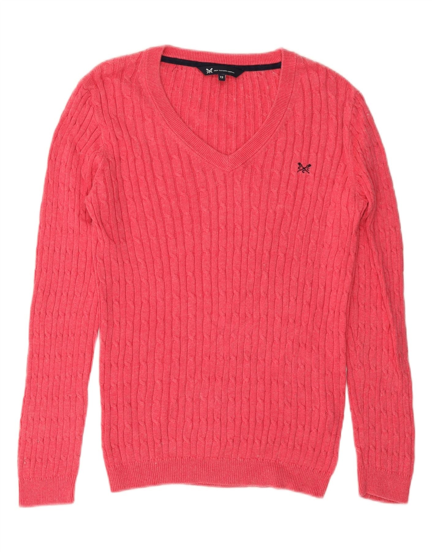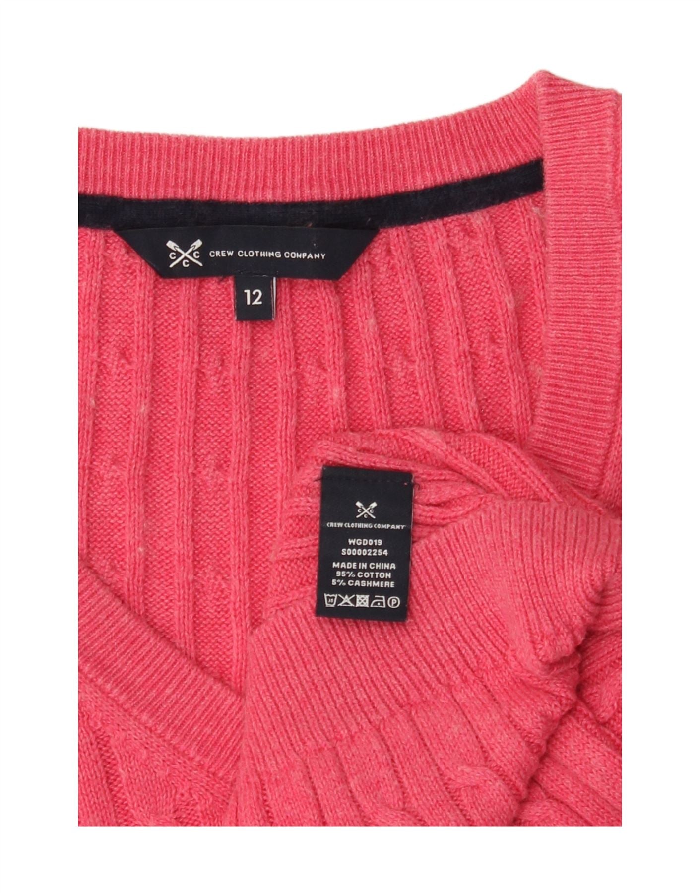 CREW CLOTHING Womens V-Neck Jumper Sweater UK 12 Medium Pink Cotton