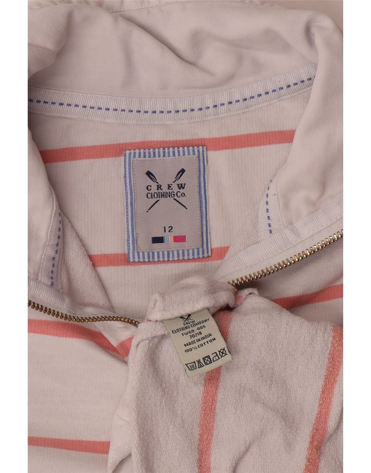 CREW CLOTHING Damska bluza z zamkiem błyskawicznym UK 12 w średnie białe paski