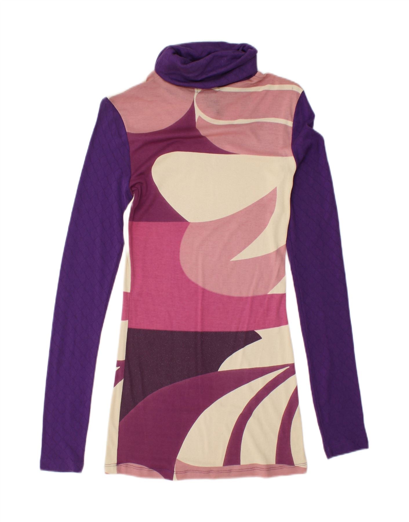 CUSTO BARCELONA Womens Abstract Pattern Jumper Dress Size 3 Medium Purple