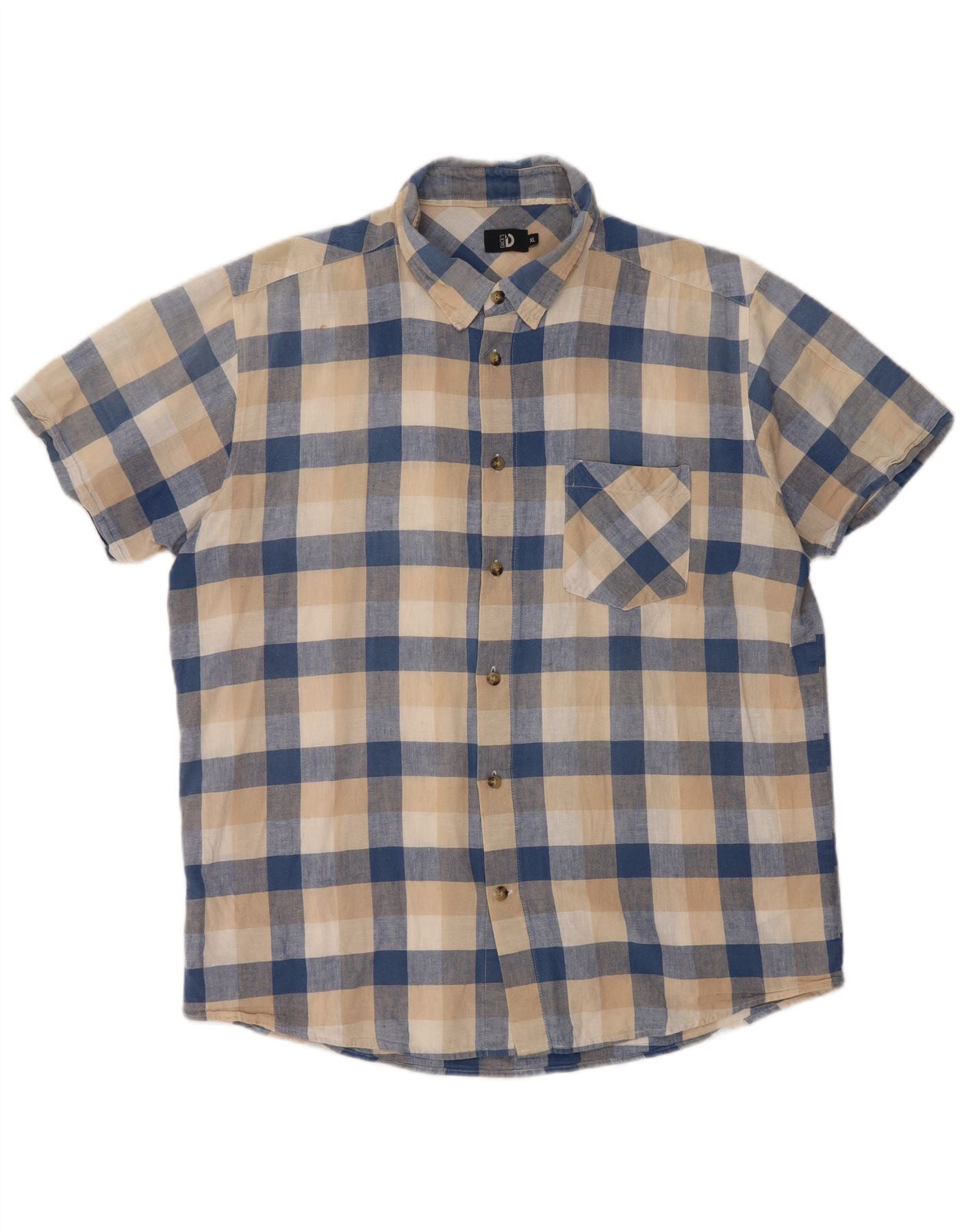 Koszula męska z krótkim rękawem Dack's XL, beżowa, lniana w kratkę