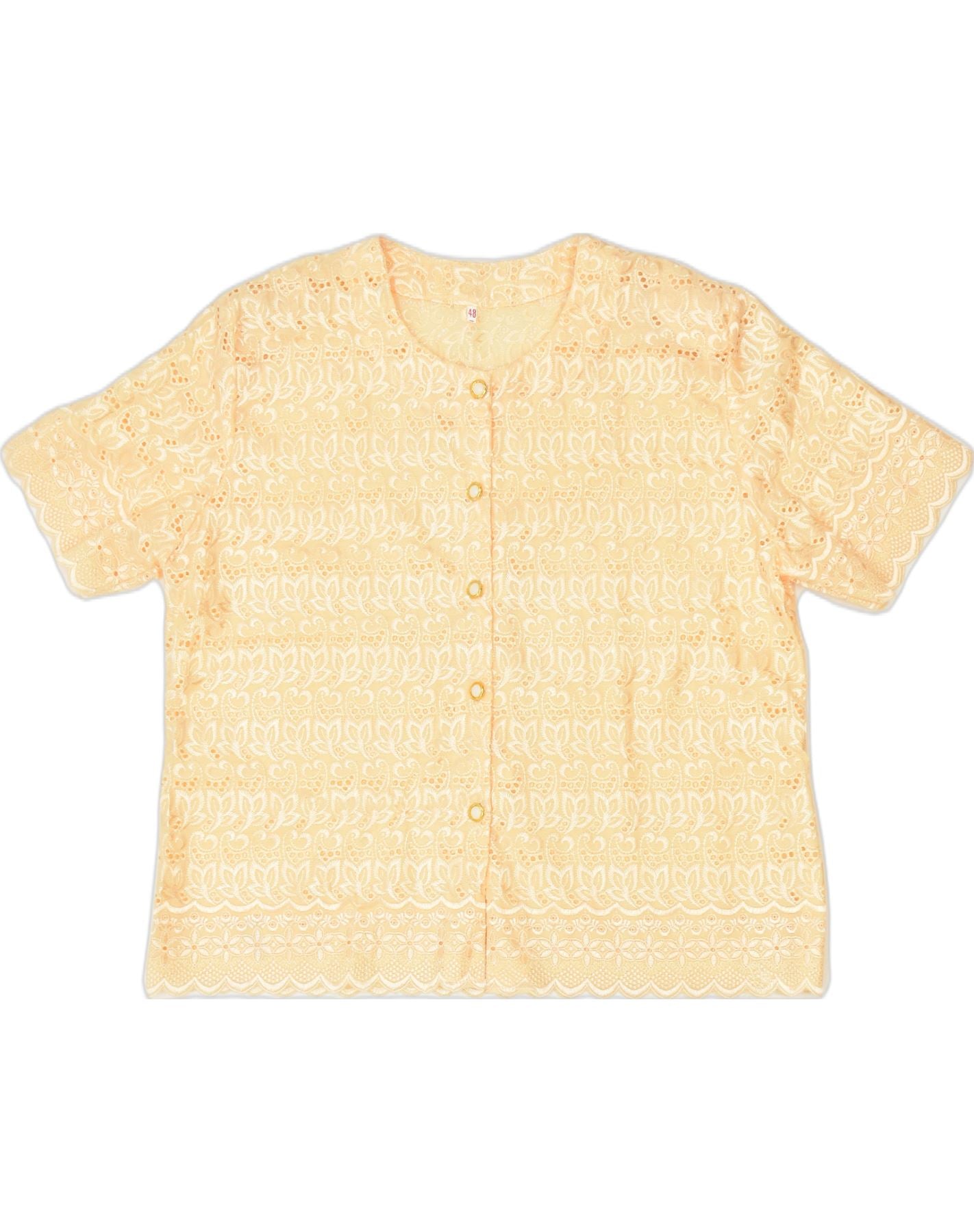 Damska bluzka koszulowa z krótkim rękawem VINTAGE IT 48 XL Żółta w kwiaty