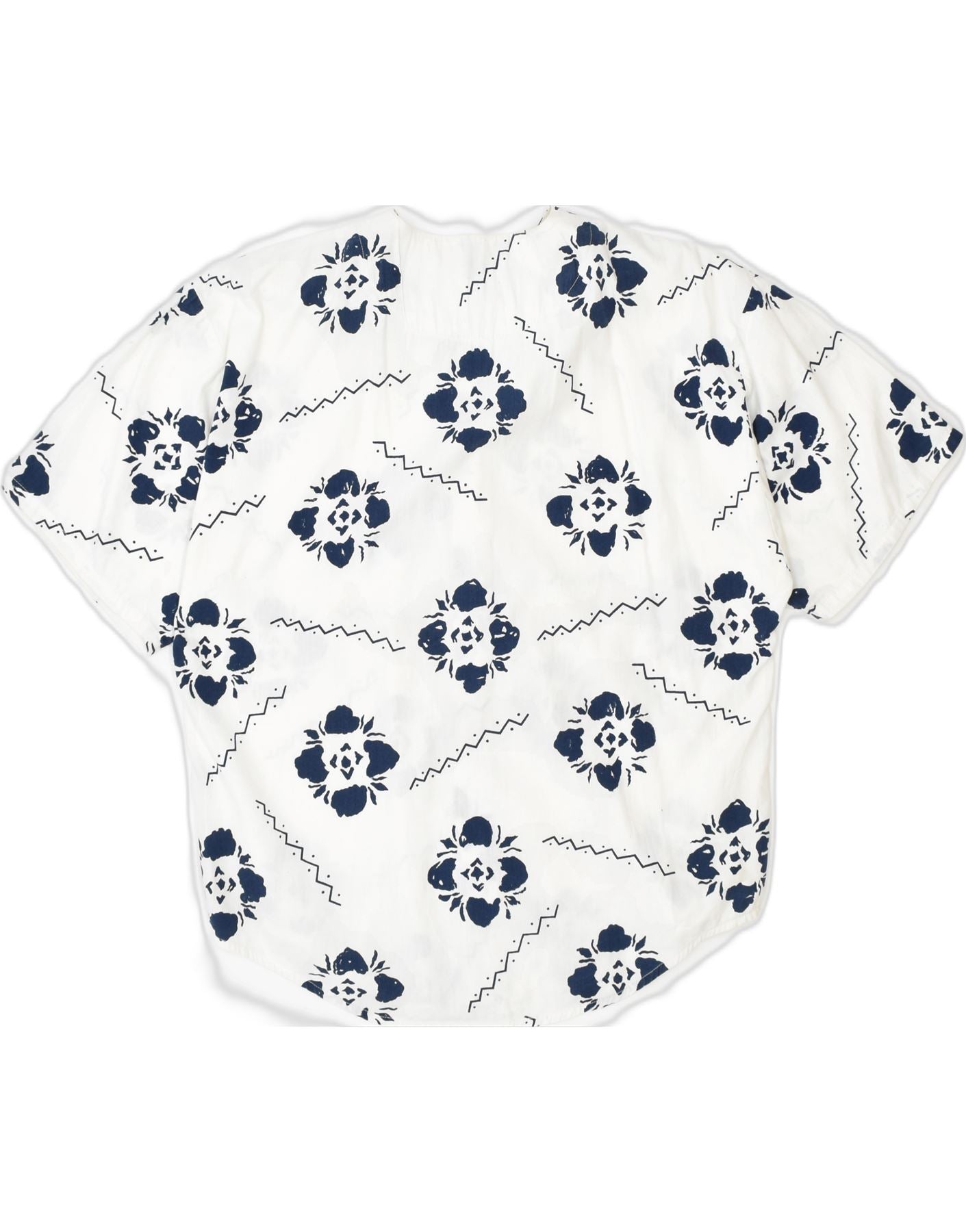 Damska bluzka koszulowa z krótkim rękawem VINTAGE UK 18 XL Biała wiskoza w kwiaty