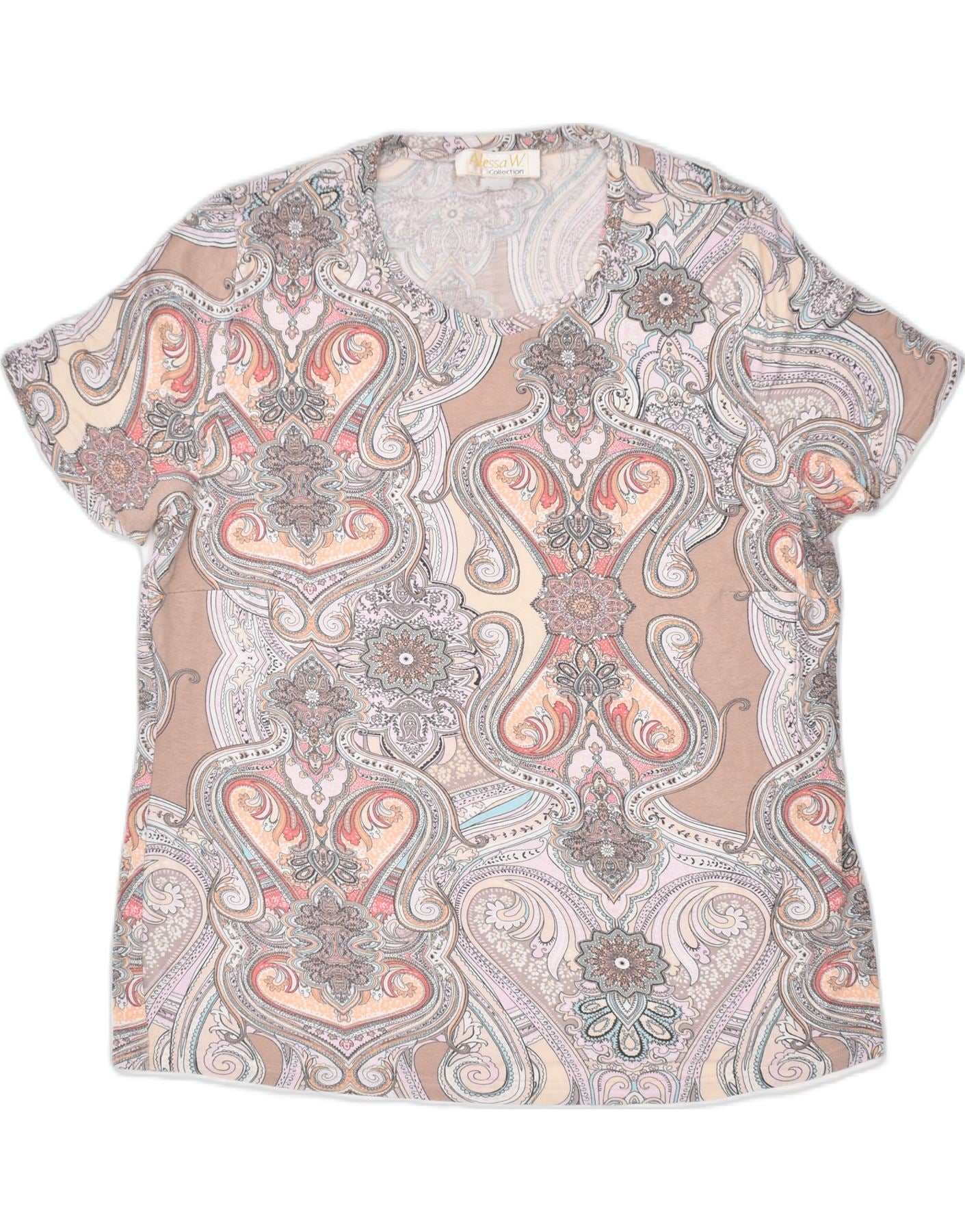 Damska koszulka oversize VINTAGE Top UK 14, duża, szara, geometryczna bawełna