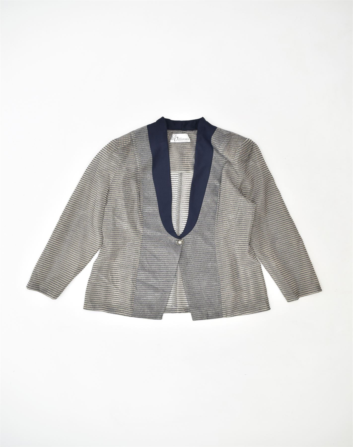 Damska marynarka LA DIFFERENCE zapinana na 1 guzik UK 12 w średnie szare paski