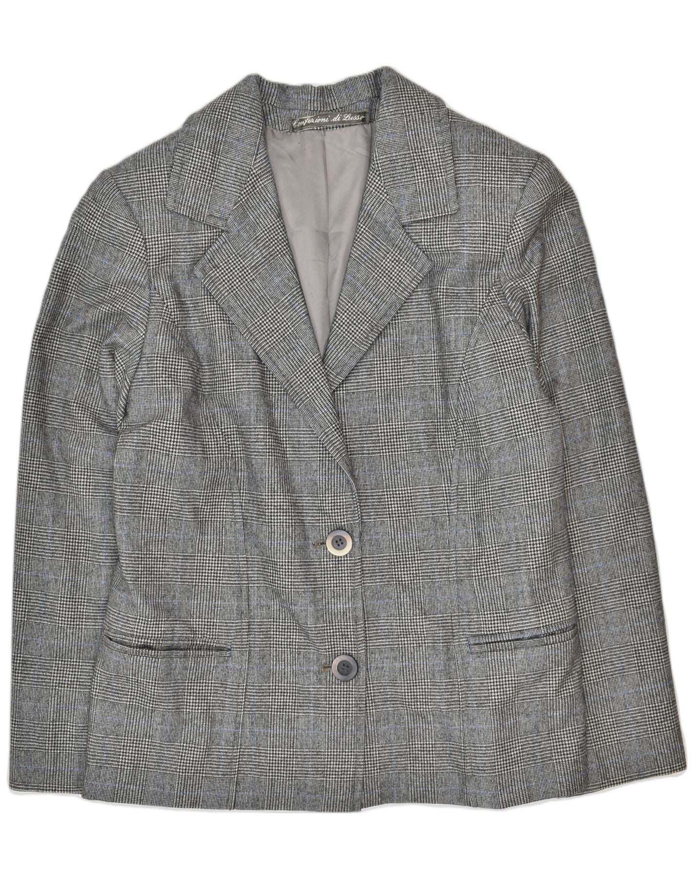 Damska marynarka VINTAGE zapinana na 2 guziki UK 14, średnia szara kratka