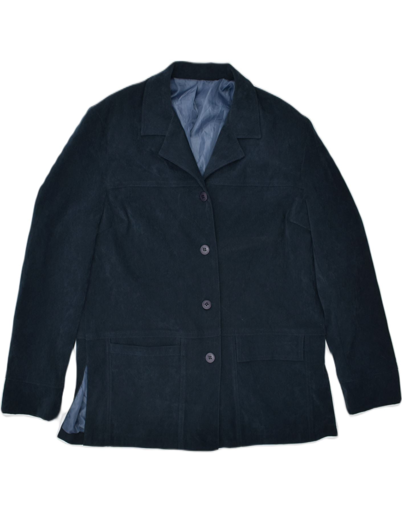 Damska marynarka VINTAGE zapinana na 4 guziki IT 46, duży niebieski poliester