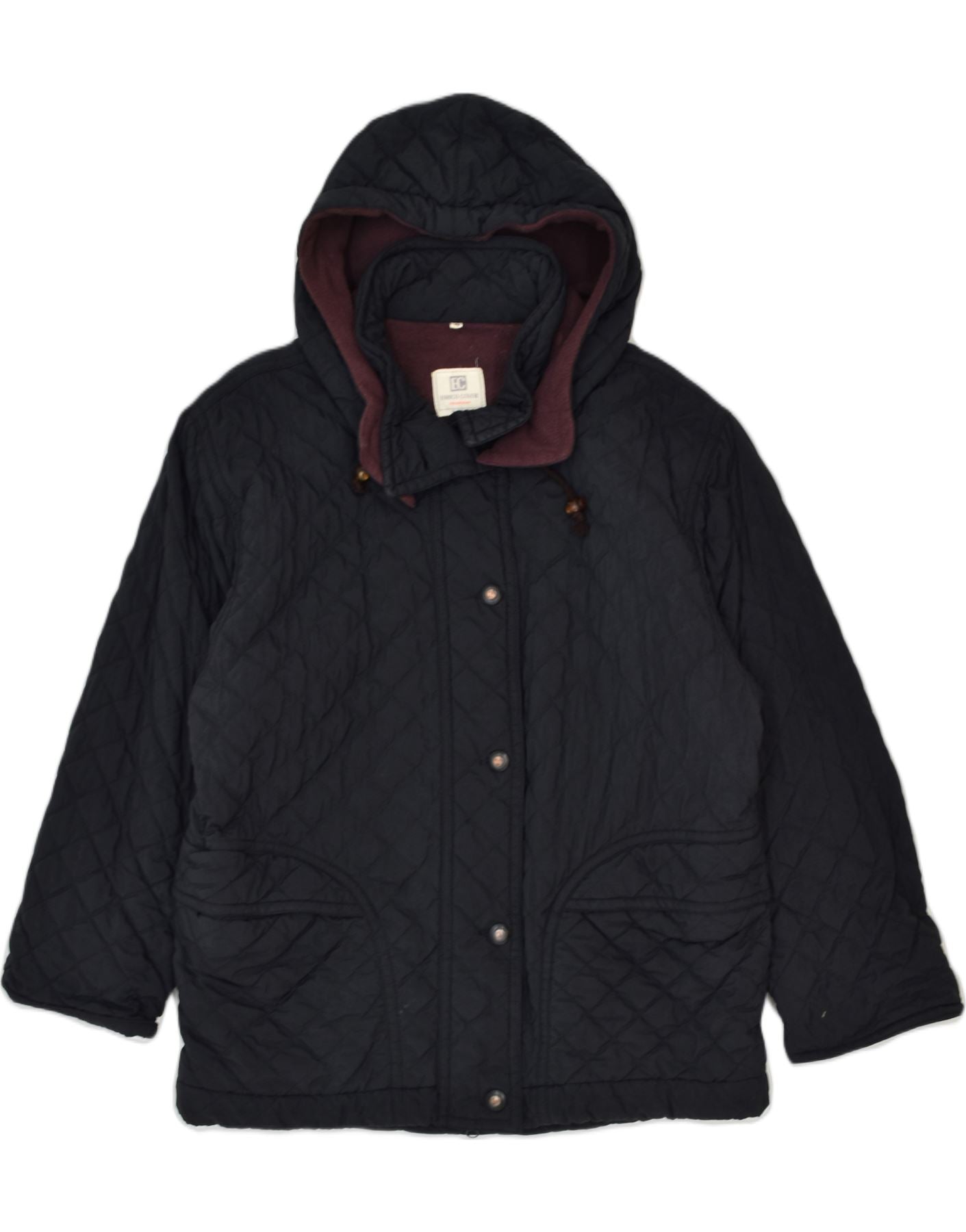 Damska pikowana kurtka z kapturem VINTAGE IT 46, duża granatowa, nylonowa