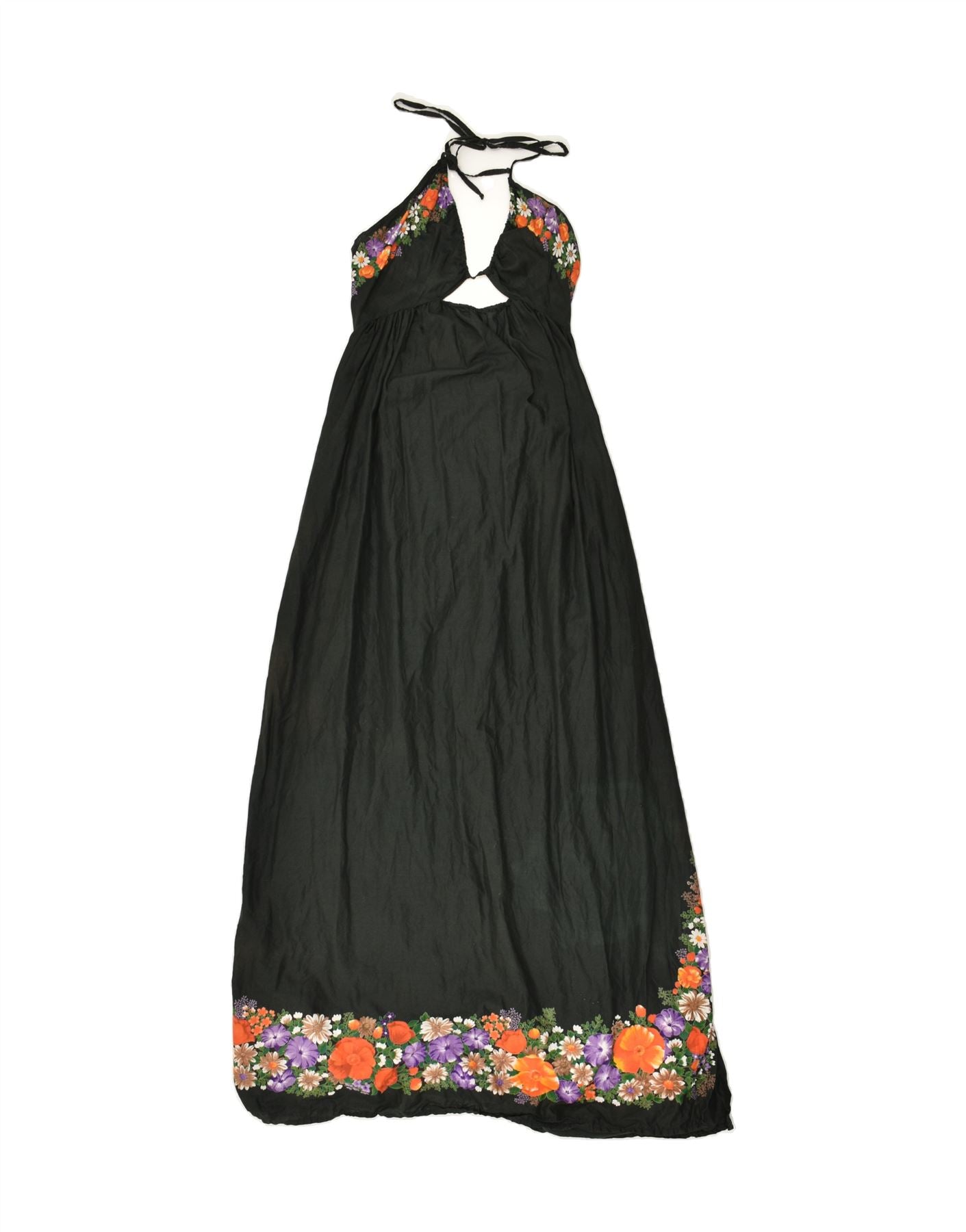 Damska sukienka maxi bez rękawów VINTAGE UK 0 2XS w czarne kwiaty