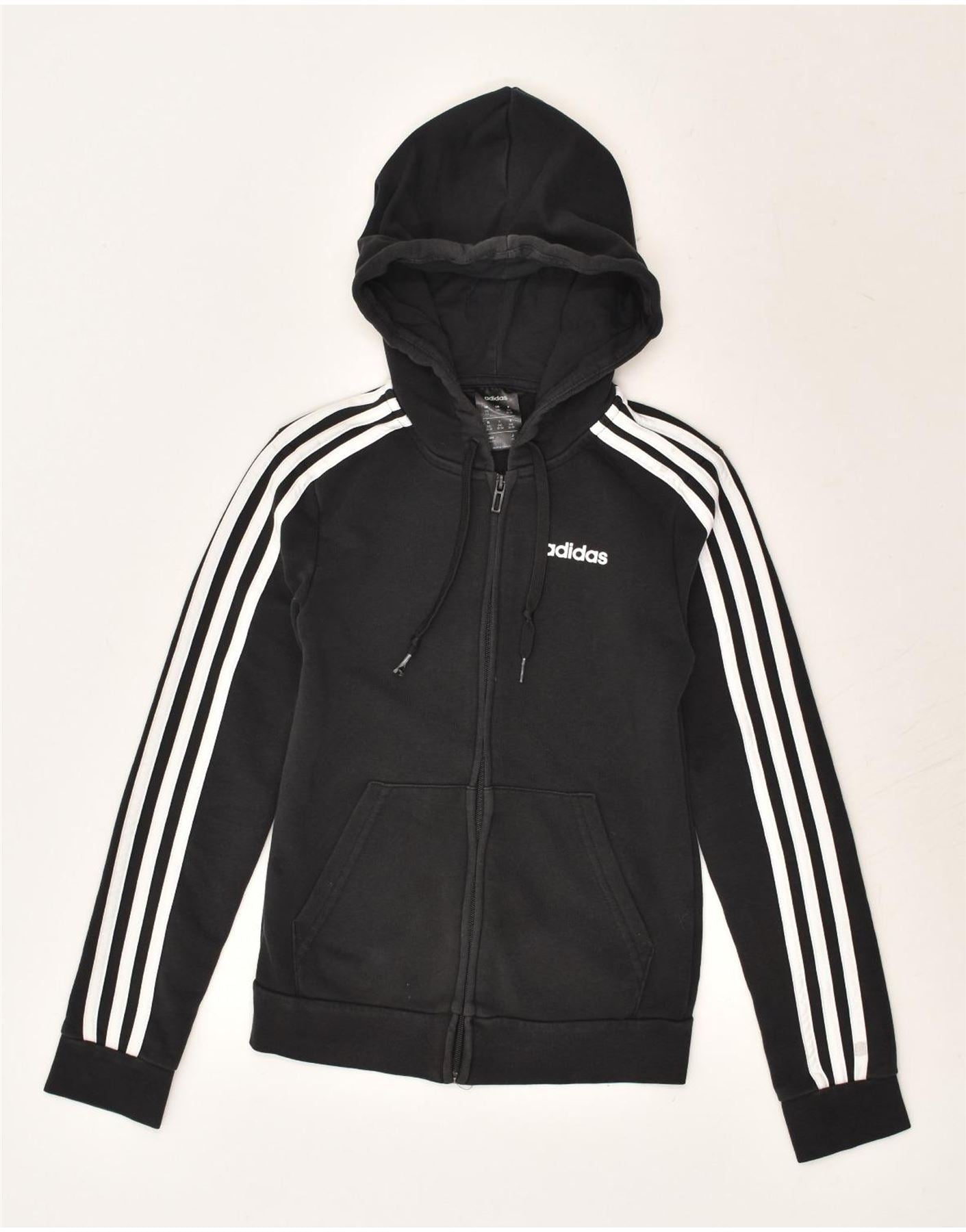 Damski sweter ADIDAS z kapturem i zamkiem UK 0/2 2XS, czarna bawełna