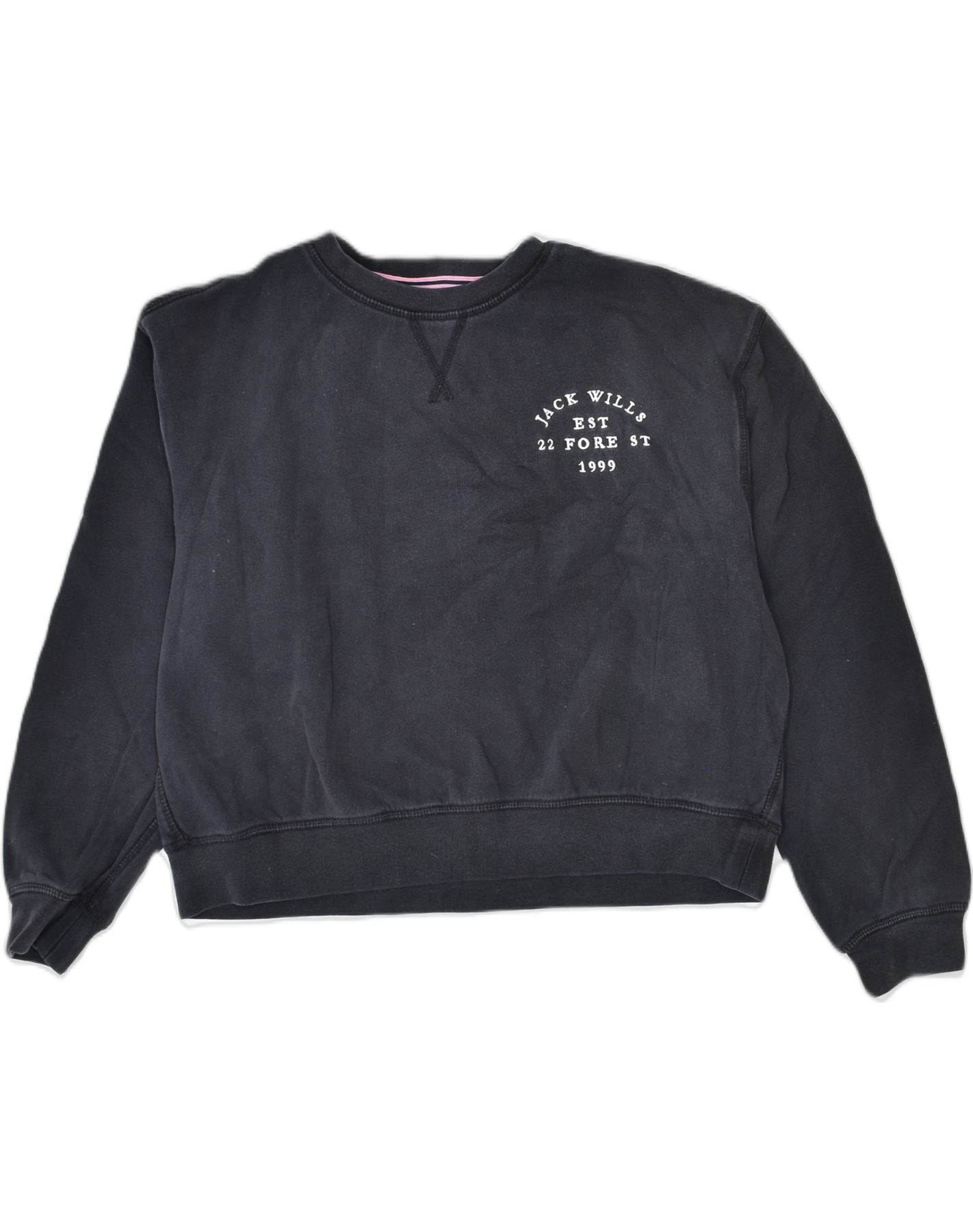Damski sweter JACK WILLS z grafiką, UK 10, mały, czarny, bawełniany