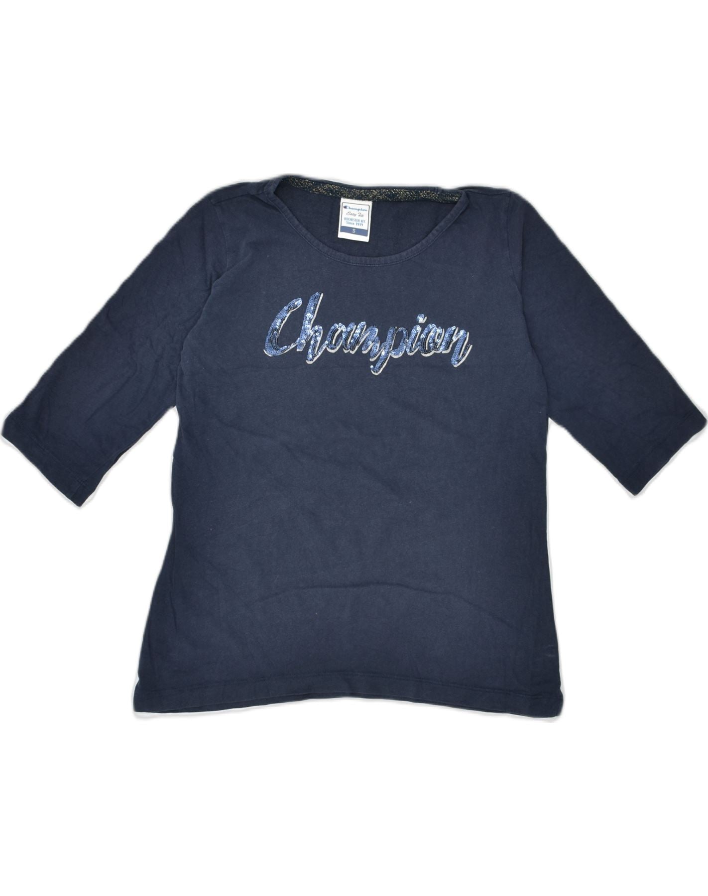 Damski top graficzny CHAMPION z rękawem 3/4, UK 10, mały, granatowy, bawełniany