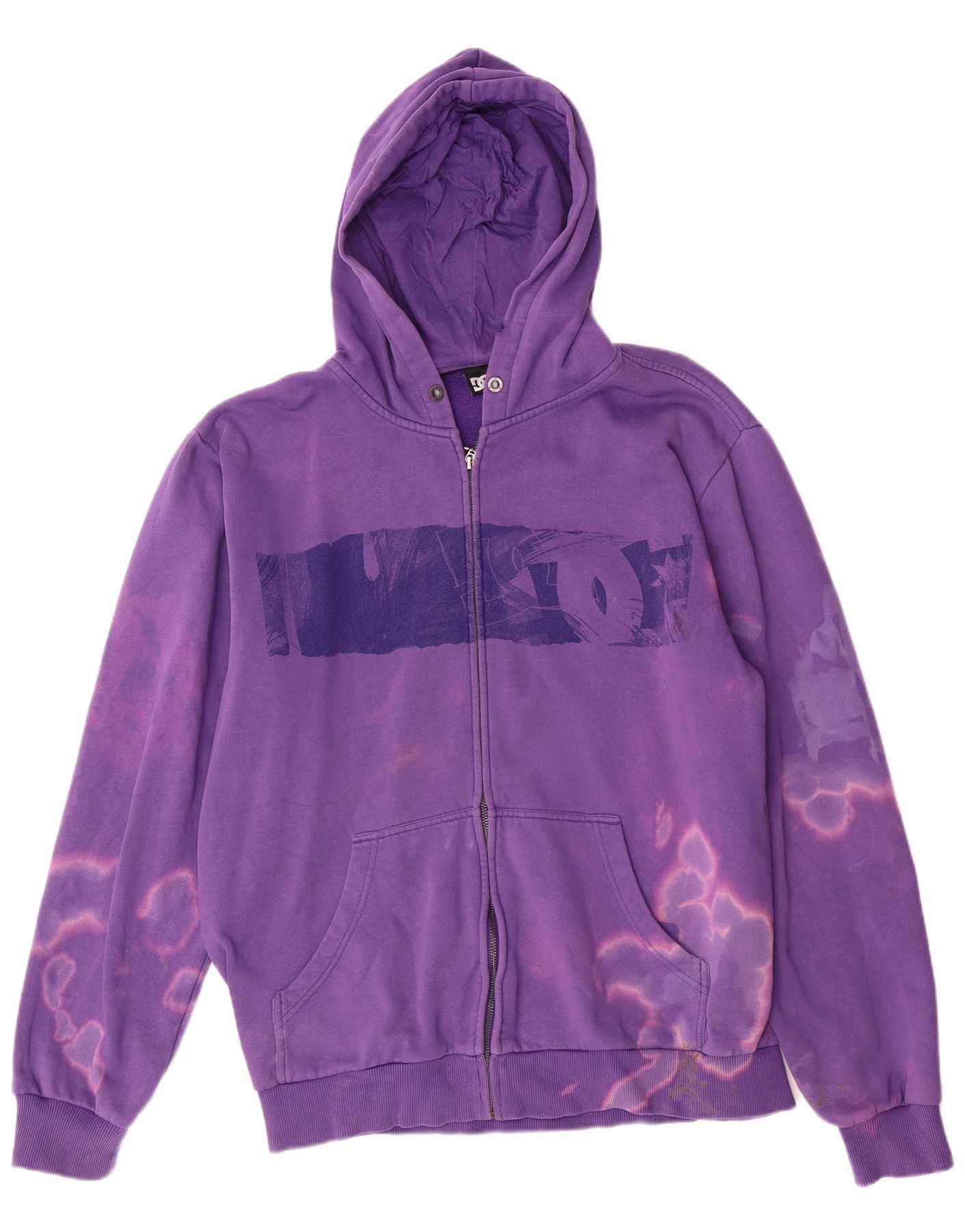 DC Mens Graphic Acid Wash Zip Hoodie Sweater Large Purple Tie Dye