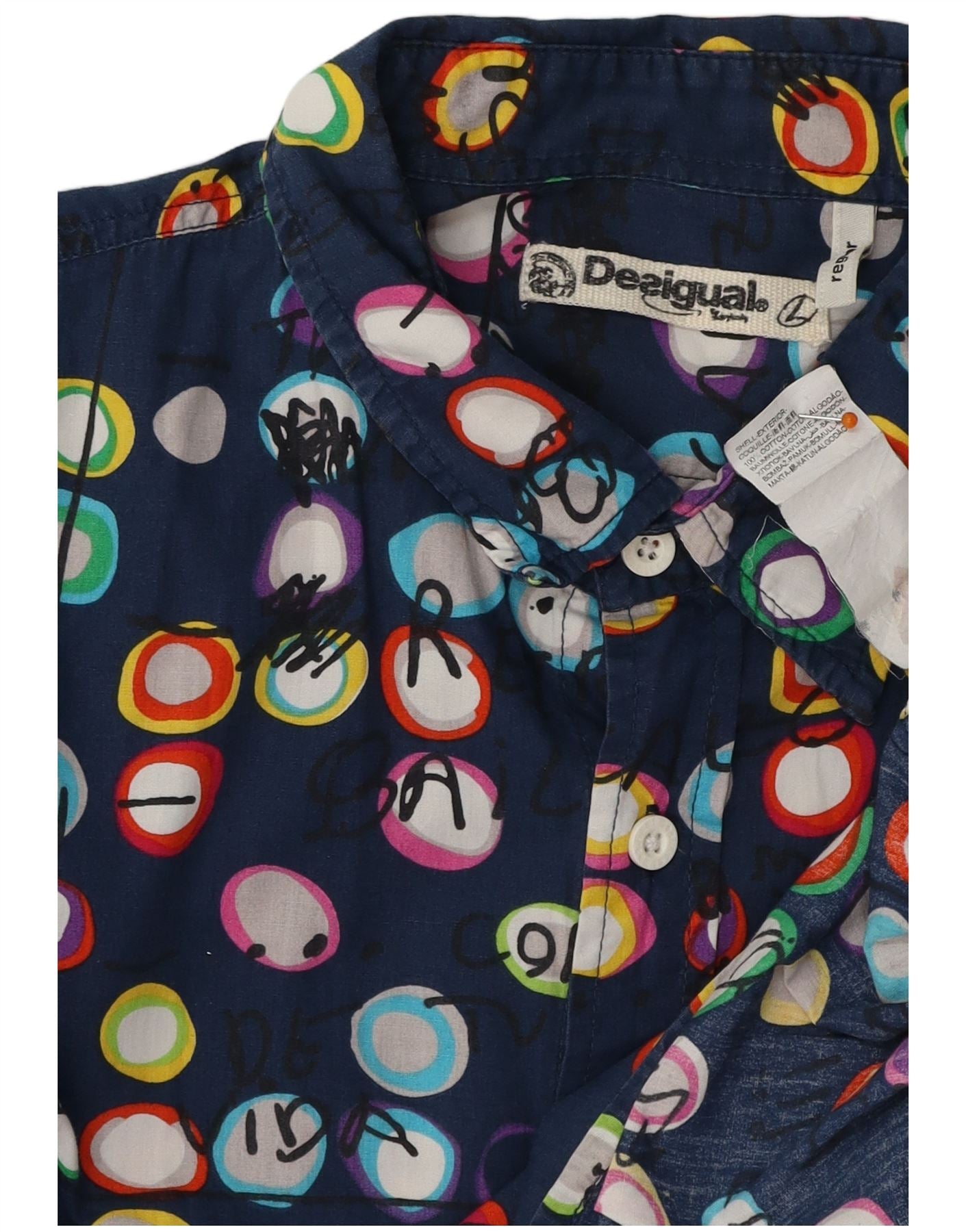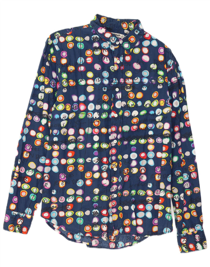 DESIGUAL Męska koszula w abstrakcyjny wzór, duża, granatowa, z geometrycznej bawełny
