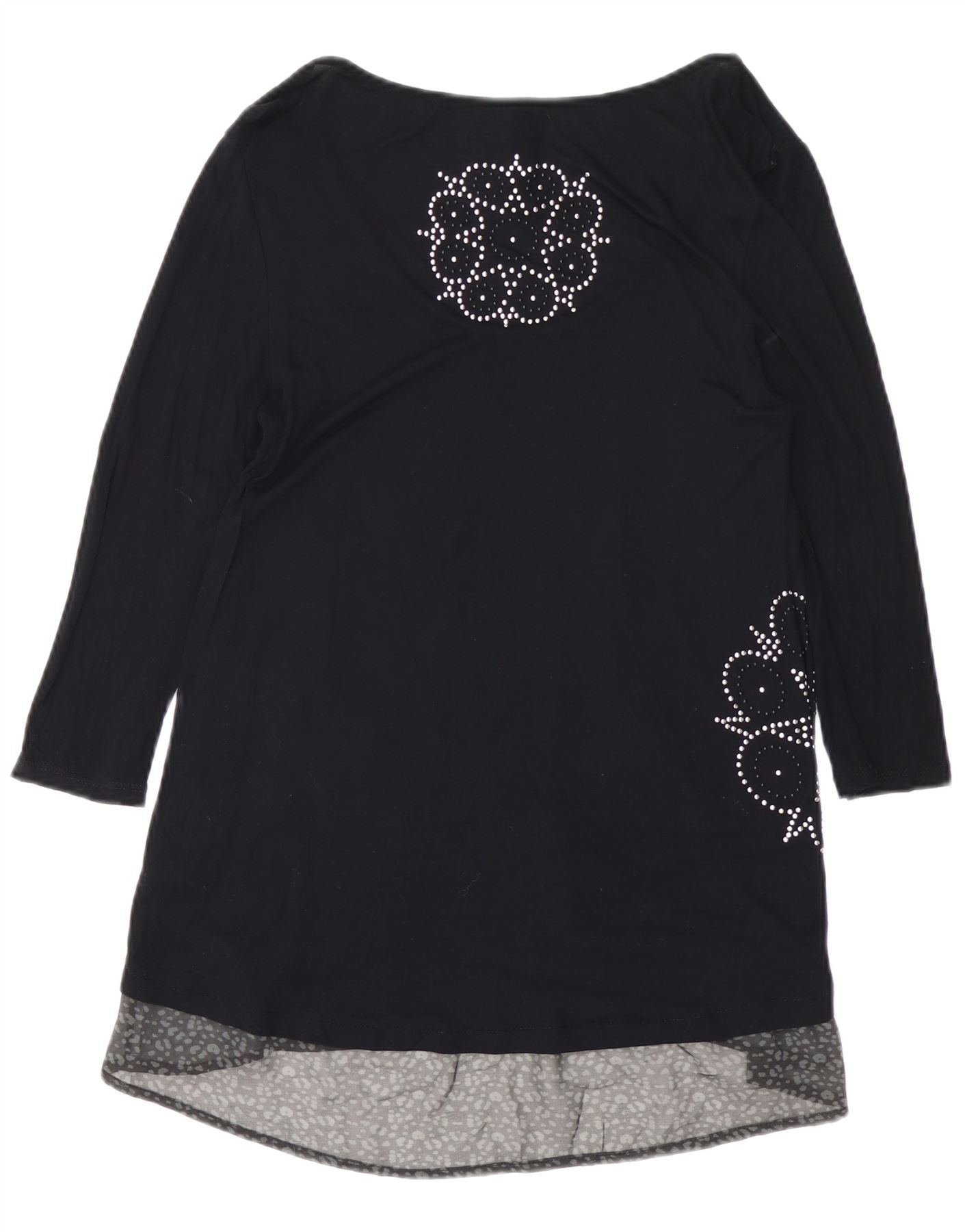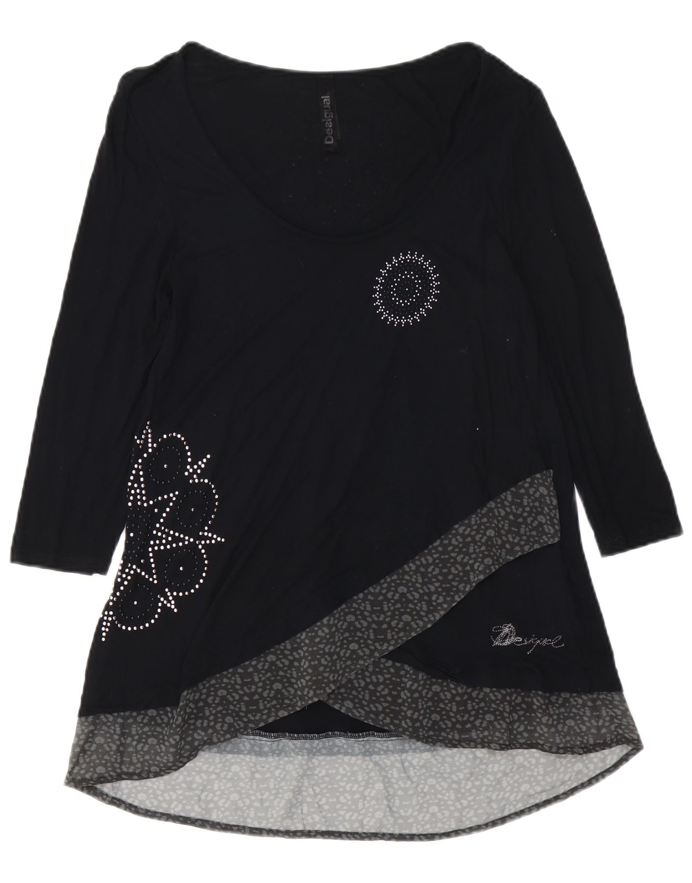 DESIGUAL Damska graficzna sukienka o linii A z rękawem 3/4 UK 12 Średnia czarna wiskoza