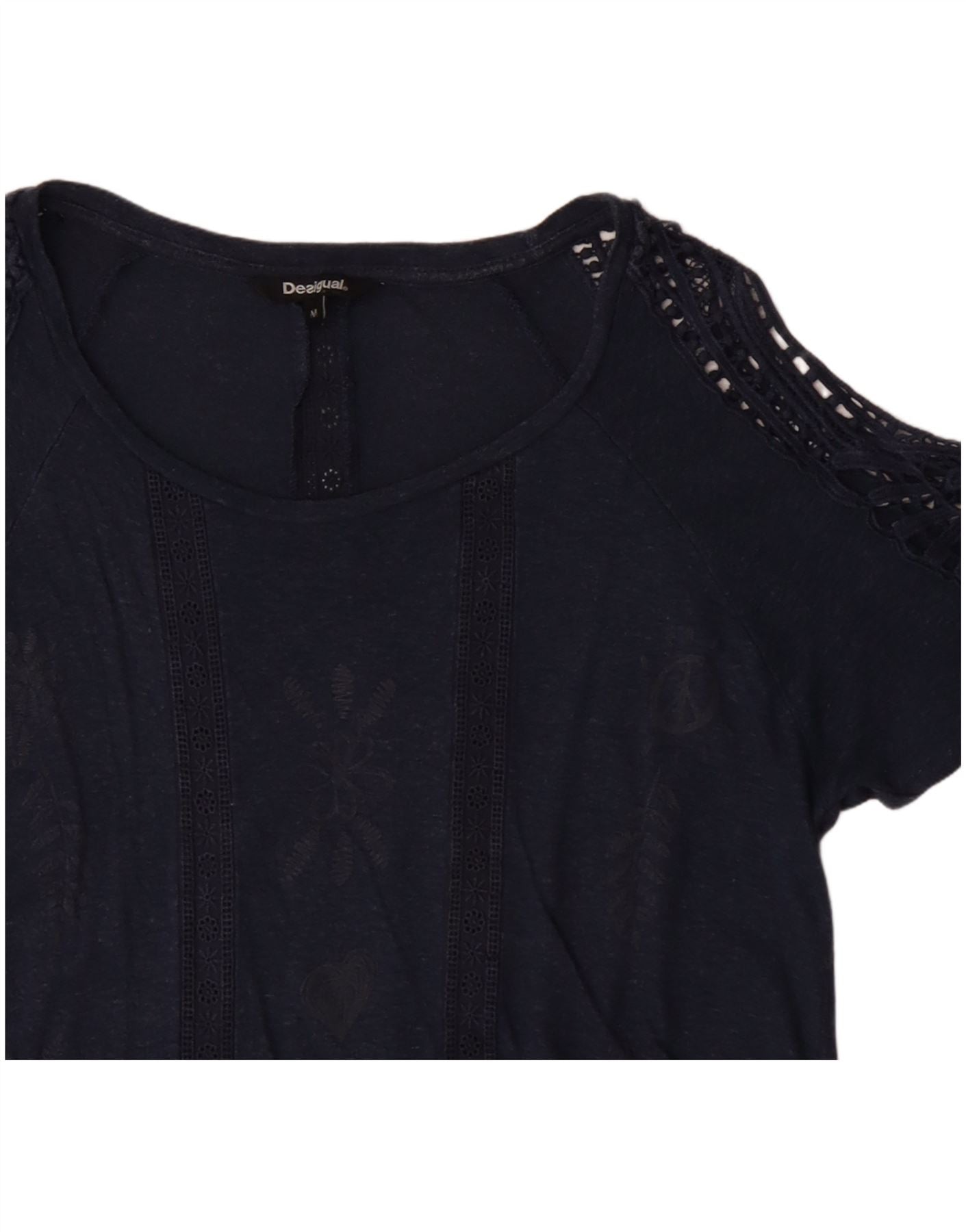DESIGUAL Damska bluzka Top UK 12 Średni granatowy w kwiaty