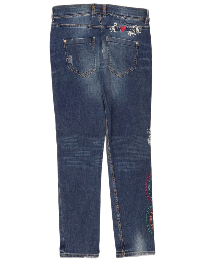 DESIGUAL Womens Boyfriend Fit Slim Jeans W28 L30 Blue Geometric Butterfly