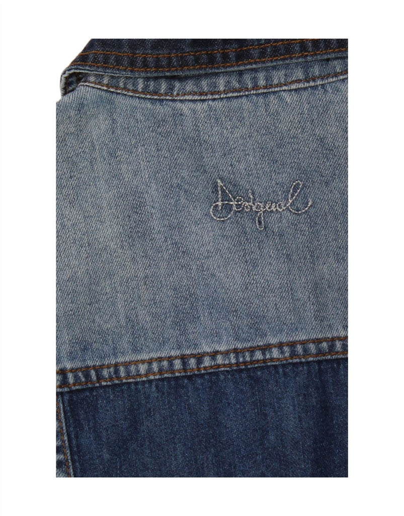 DESIGUAL Womens Crop Graphic Denim Jacket UK 10 Small Blue Floral