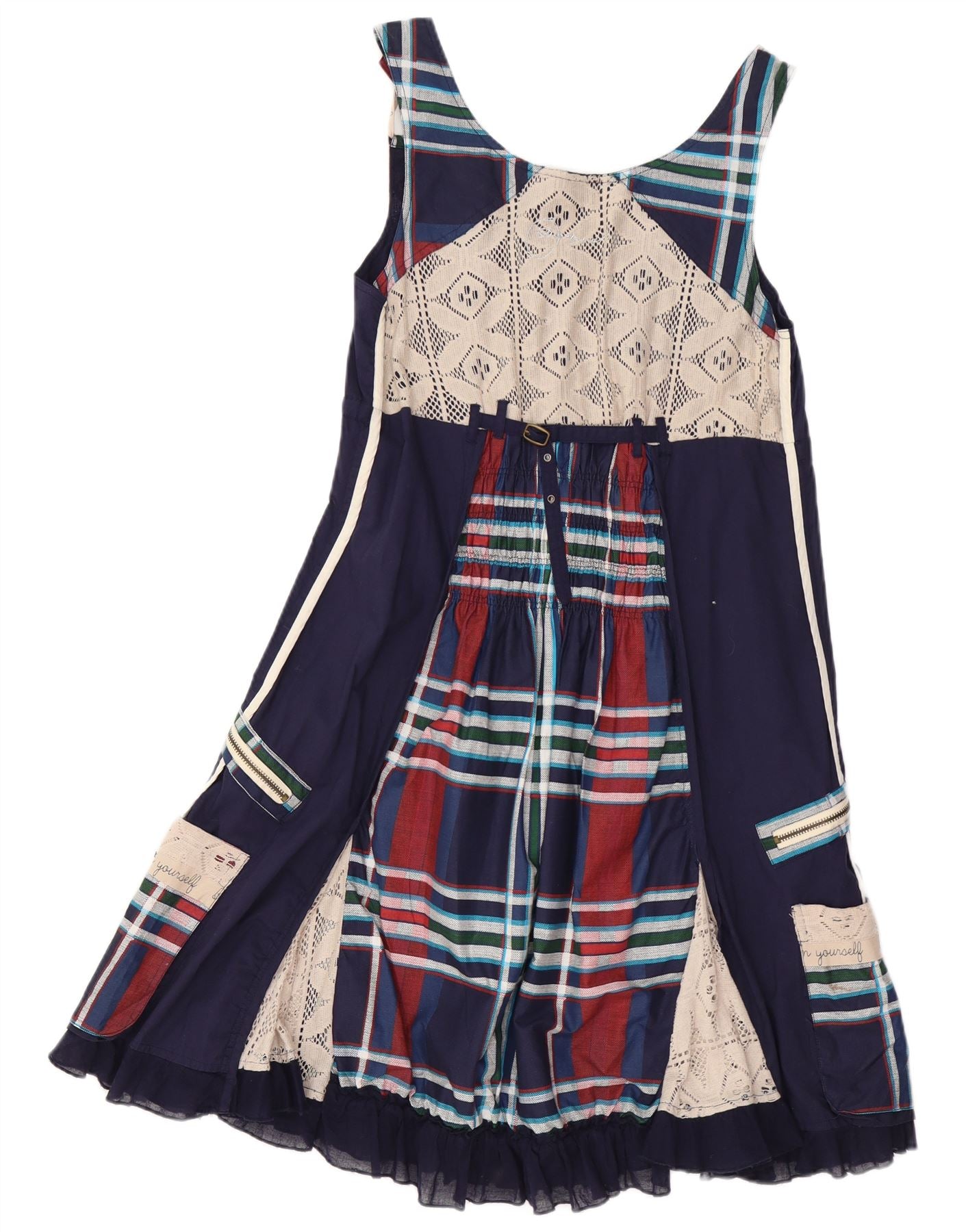 Damska graficzna sukienka o linii A DESIGUAL EU 40, średni granatowy patchwork