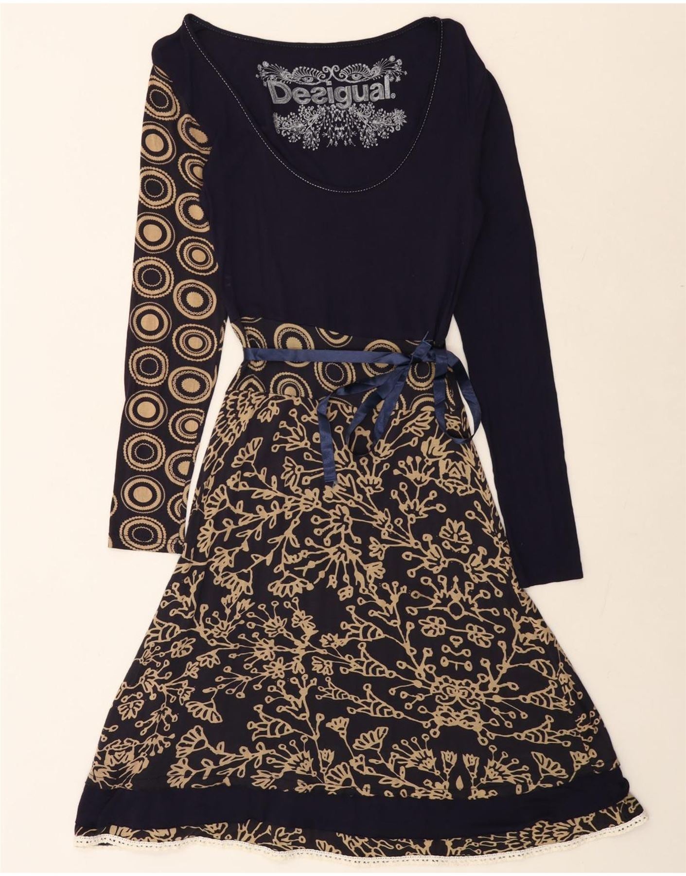 DESIGUAL Damska graficzna sukienka o linii A UK 12 Średni granatowy w kwiaty