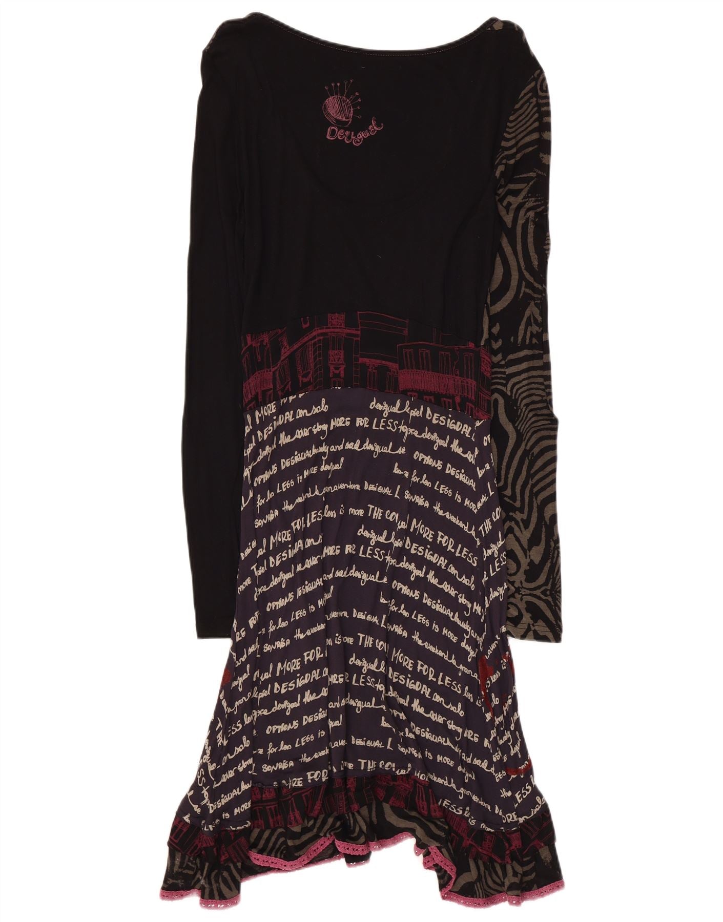 Damska graficzna sukienka o linii A Desigual UK 14, duża czarna patchworkowa