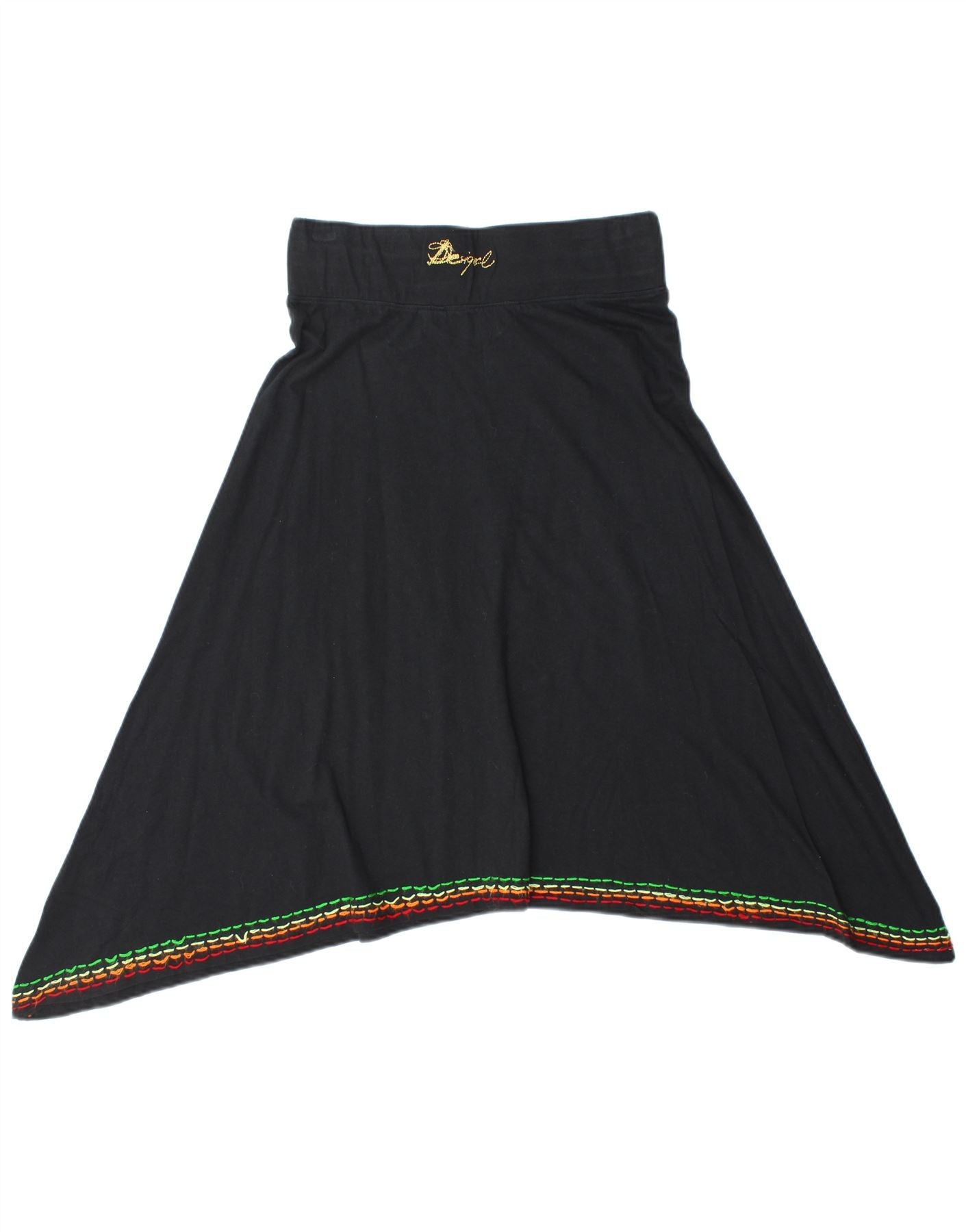Desigual damska graficzna asymetryczna spódnica średnia W28 czarna bawełniana w kwiaty
