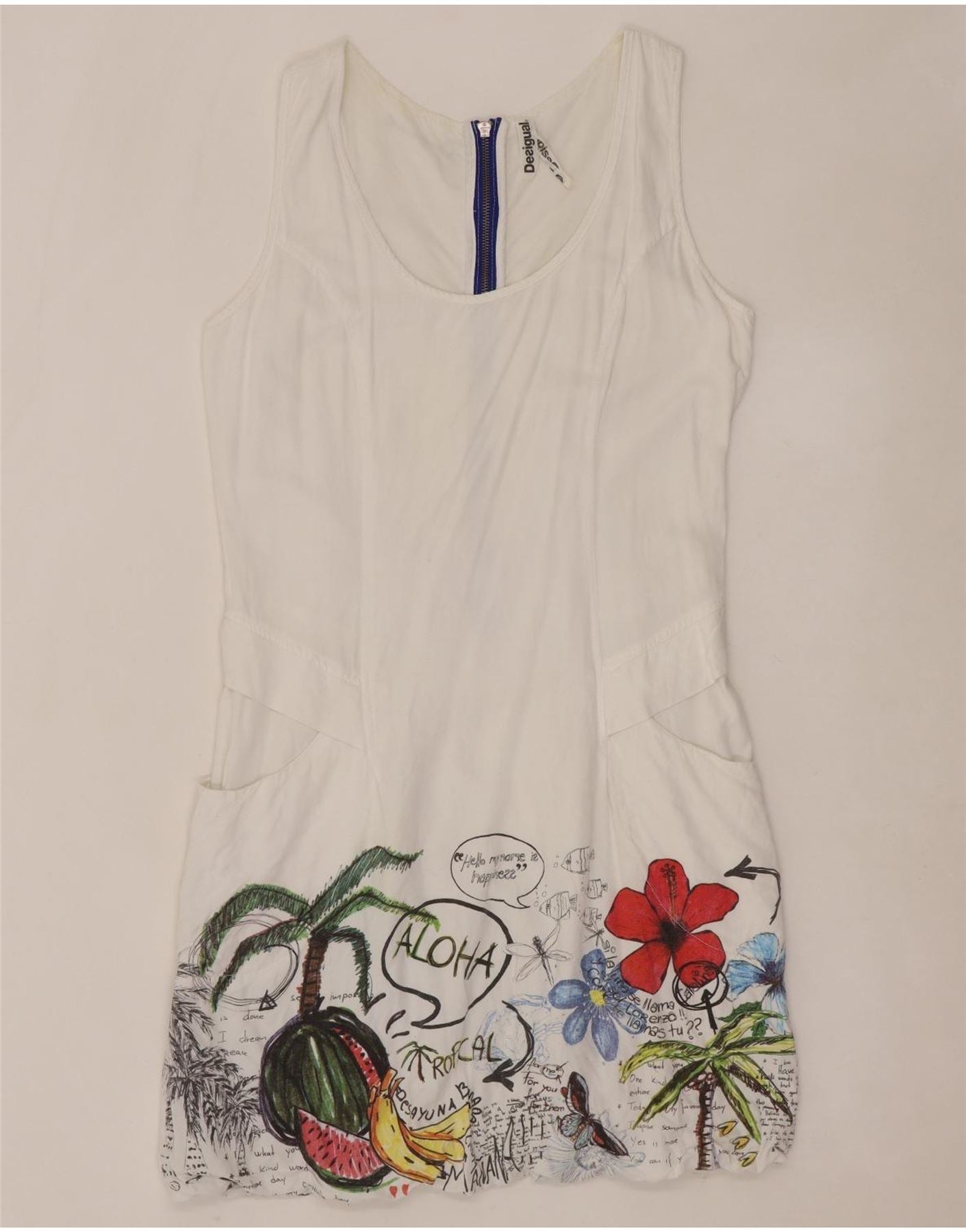 DESIGUAL Damska graficzna sukienka bąbelkowa bez rękawów EU 40 Średniobiała w kwiaty