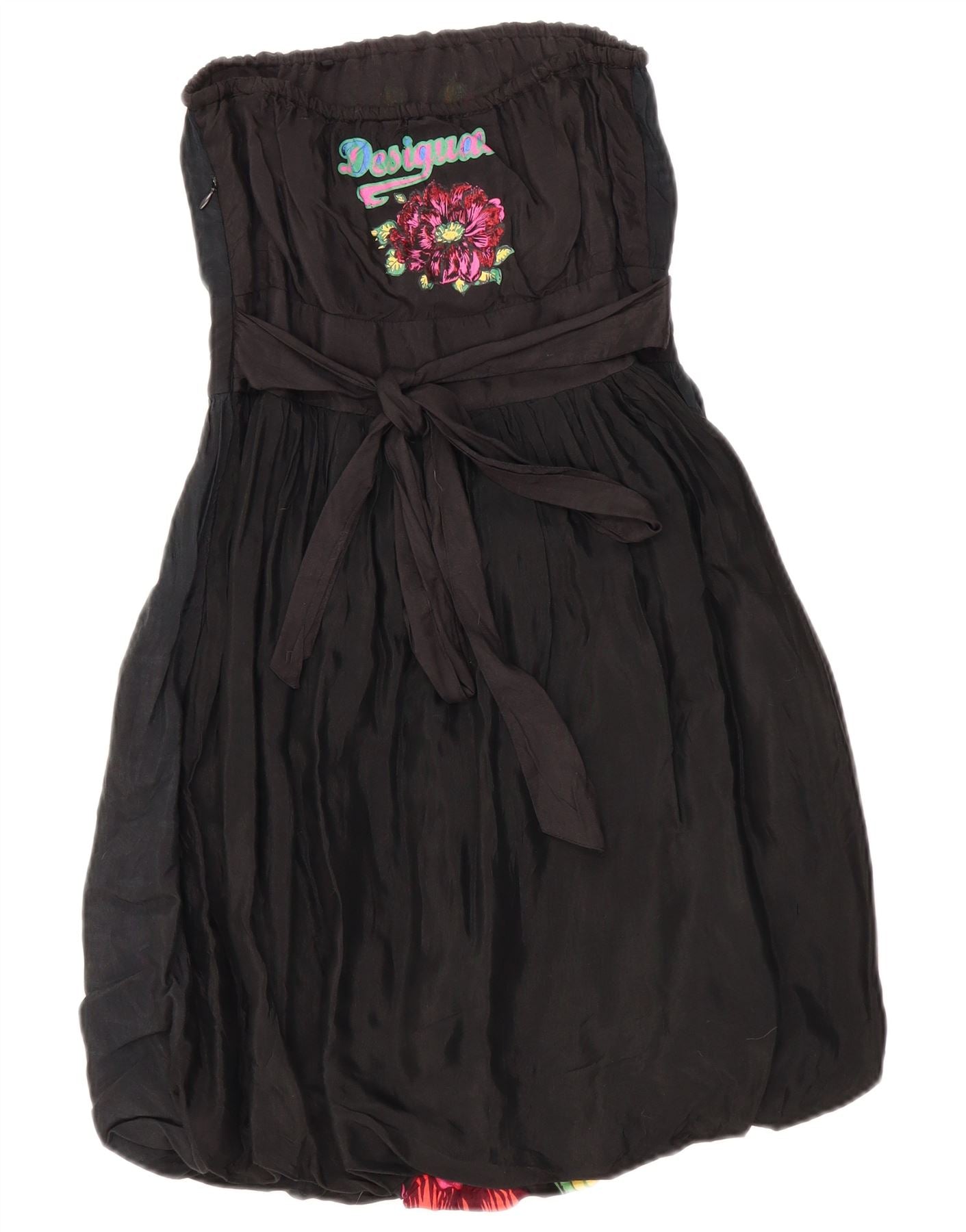 DESIGUAL Damska graficzna sukienka bąbelkowa bez ramiączek EU 38, średnia czarna w kwiaty