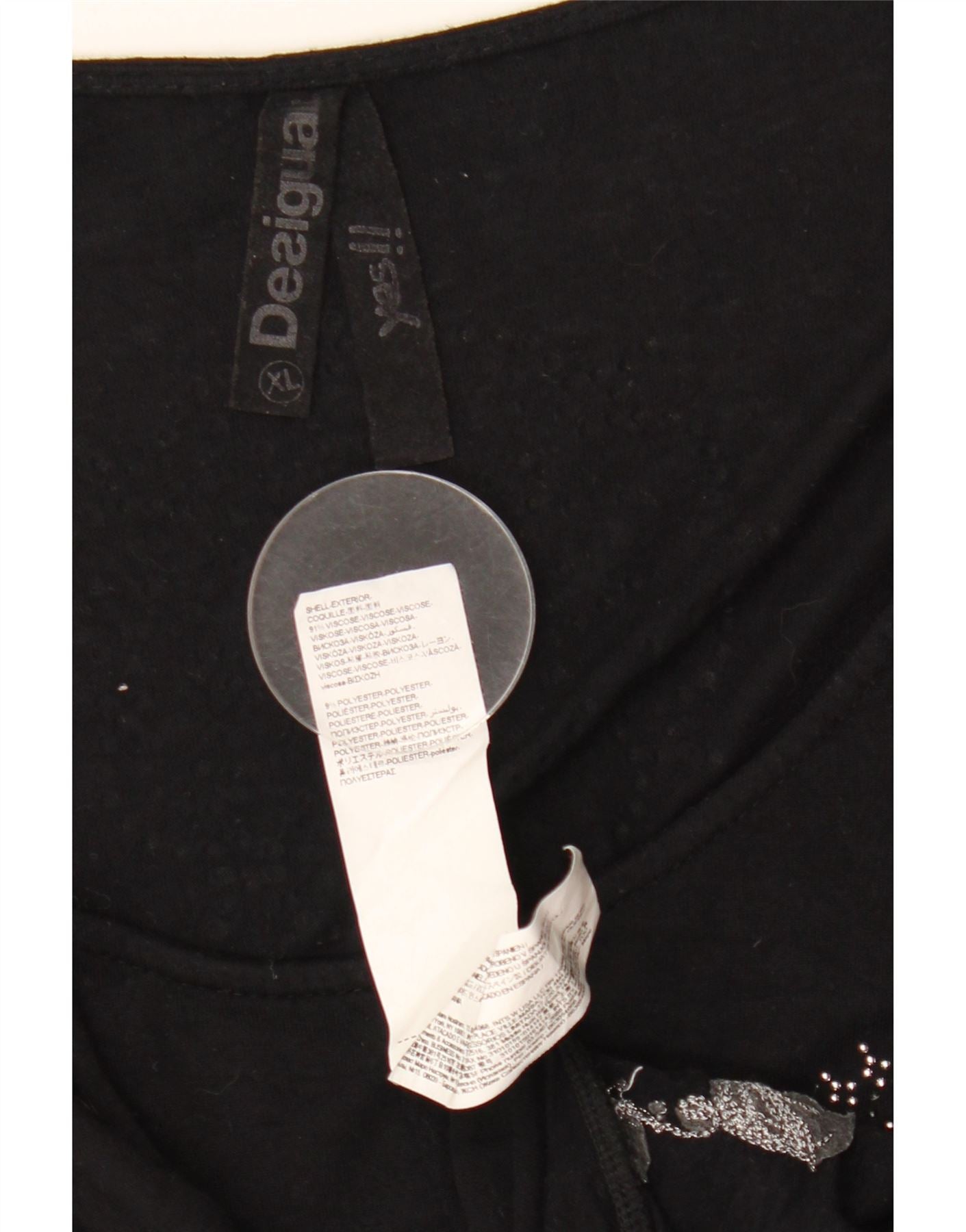 Damski graficzny top DESIGUAL z rękawem 3/4, UK 18 XL, czarny, wiskoza z nadrukiem zwierzęcym