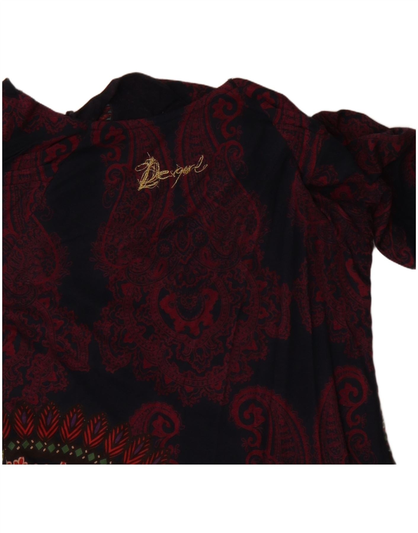 Damski graficzny top DESIGUAL z długim rękawem UK 12, średni granatowy paisley