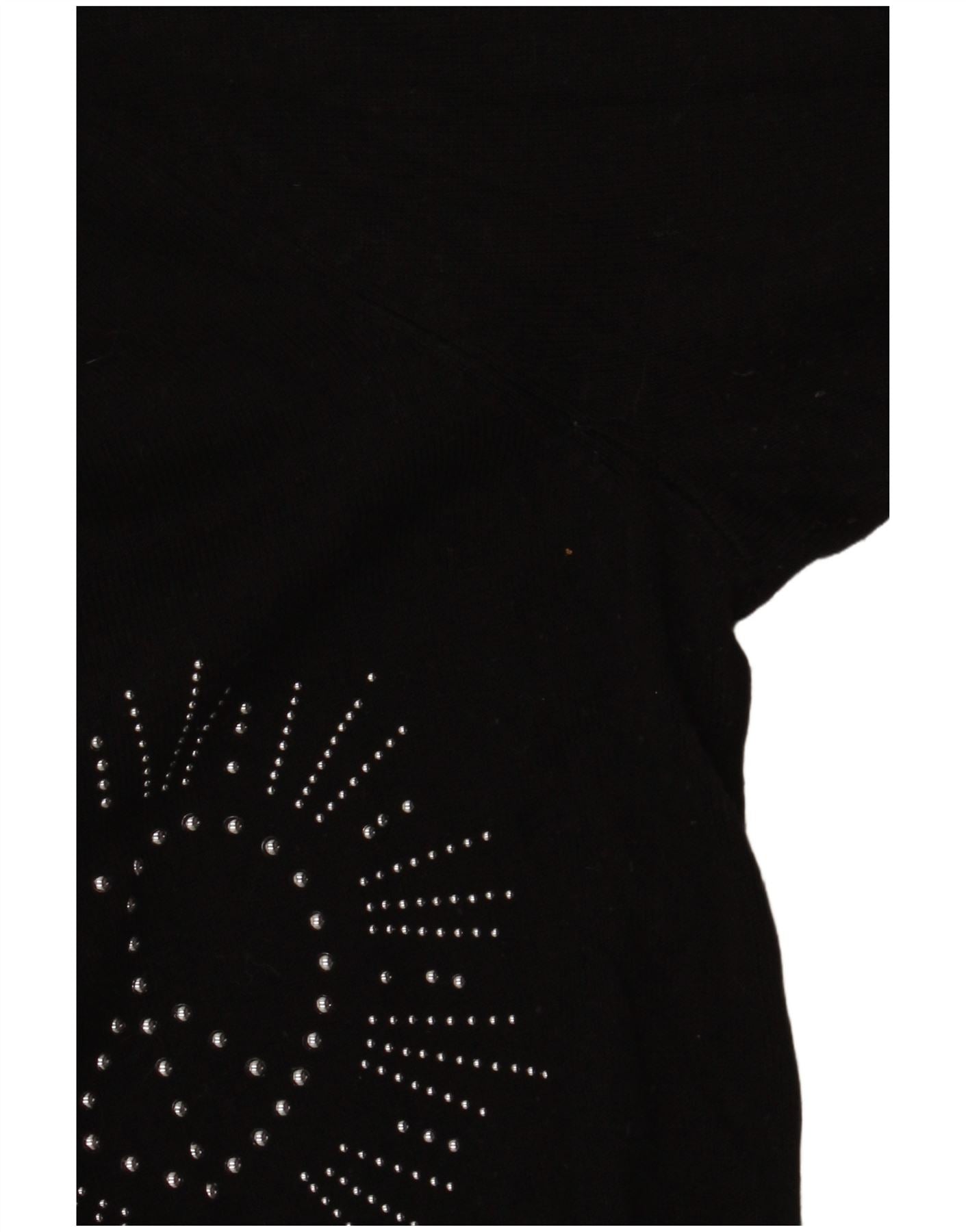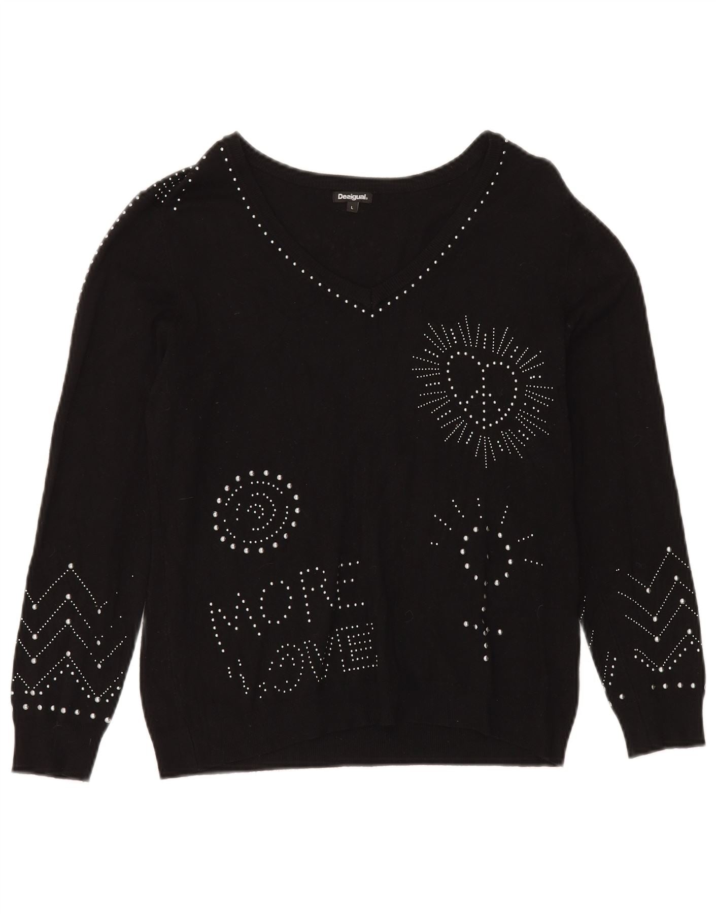 Damski sweter DESIGUAL z graficznym dekoltem w kształcie litery V, UK 16, duży, czarny, syntetyczny