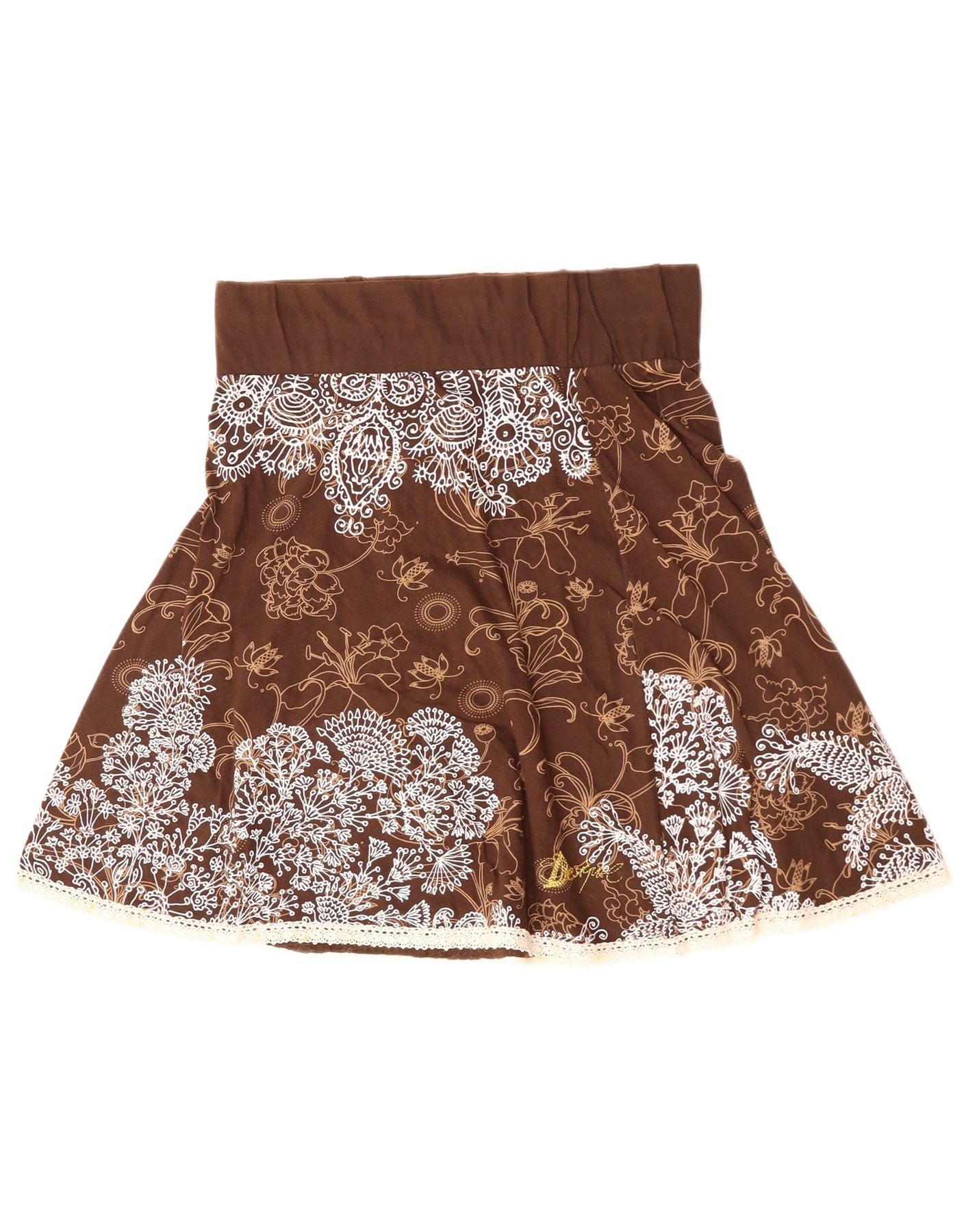 DESIGUAL Damska spódnica trapezowa z wysokim stanem, duża W30, brązowa, bawełniana w kwiaty