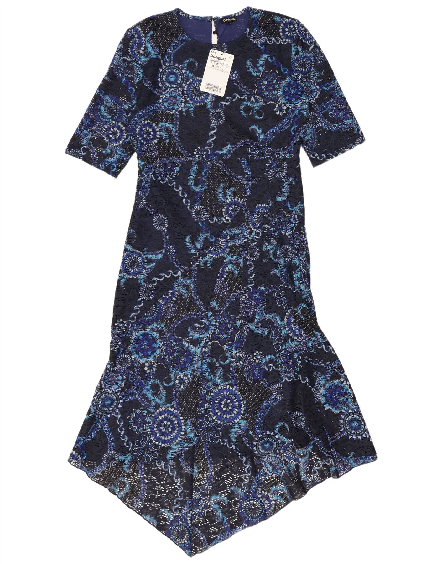 Desigual damska koronkowa asymetryczna sukienka UK 12 średni granatowy kwiatowy