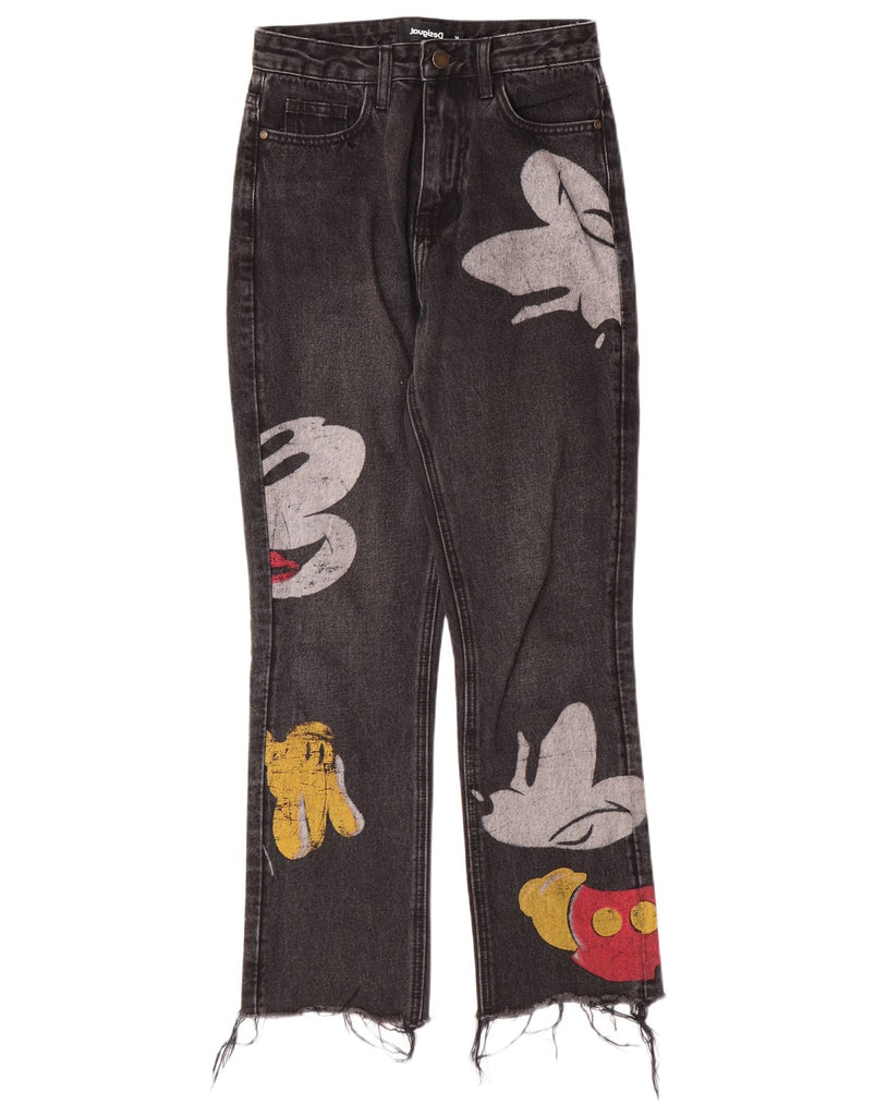 DESIGUAL Womens Mickey Mouse Graphic Straight Jeans EU 34 XS W24 L27 Black