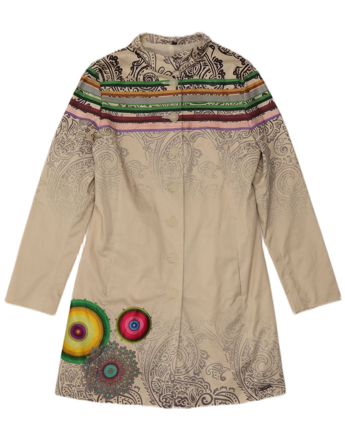 Desigual damski płaszcz EU 40, średni biały, bawełniany paisley